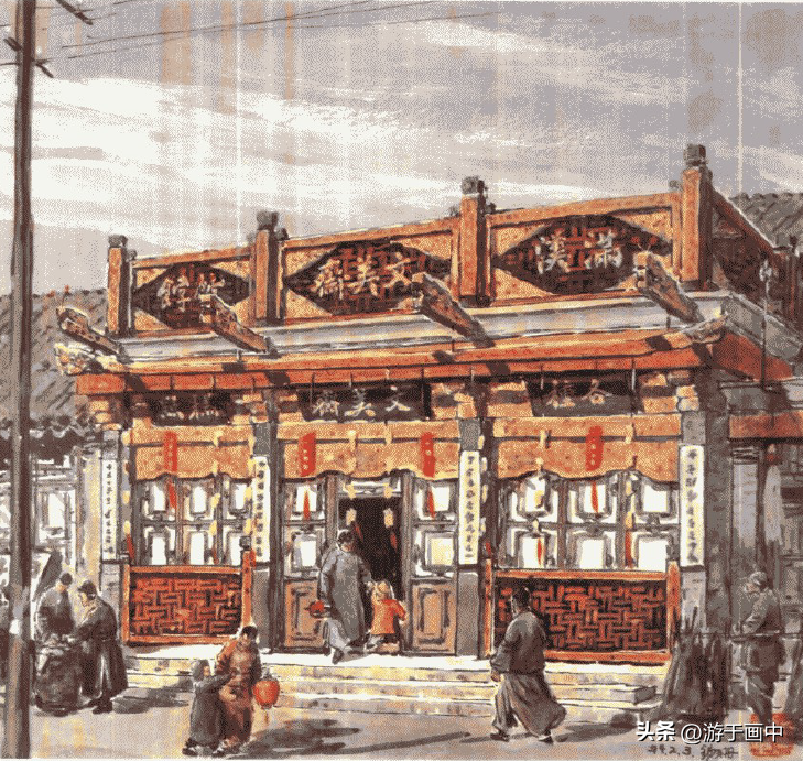 清末至三十年代,著名饭馆有“八大楼",郡东兴楼、泰丰楼、正阳楼、万德楼,悦宾楼,庆云楼、会元楼、新丰楼。图即东兴楼,号称八大楼之首,原在东安门大街路北,经营山东风味菜肴。