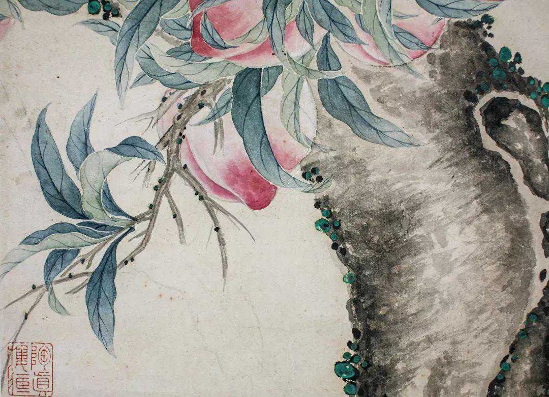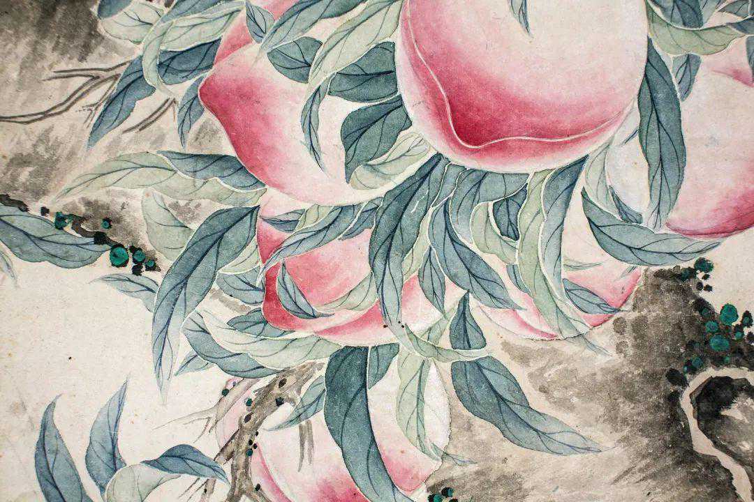 所以,湖社是非常重要的,这次给大家带来两件金城,一件绢本水墨《九如图》,实物真的好,但是拍不出来,哭;另一件寿桃,可以说是相当讨喜。