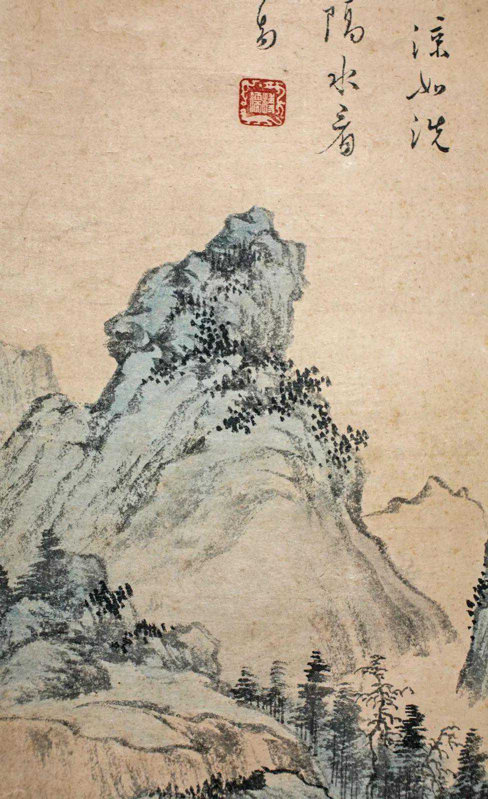 二十岁后开始与北京名画家如姜颖生、林琴南、金城、陈师曾、陈半丁、萧谦中、汤定之、贺履之相往来。这幅《秋山策杖》是以石涛笔意写就,画面氤氲,非常耐看。
