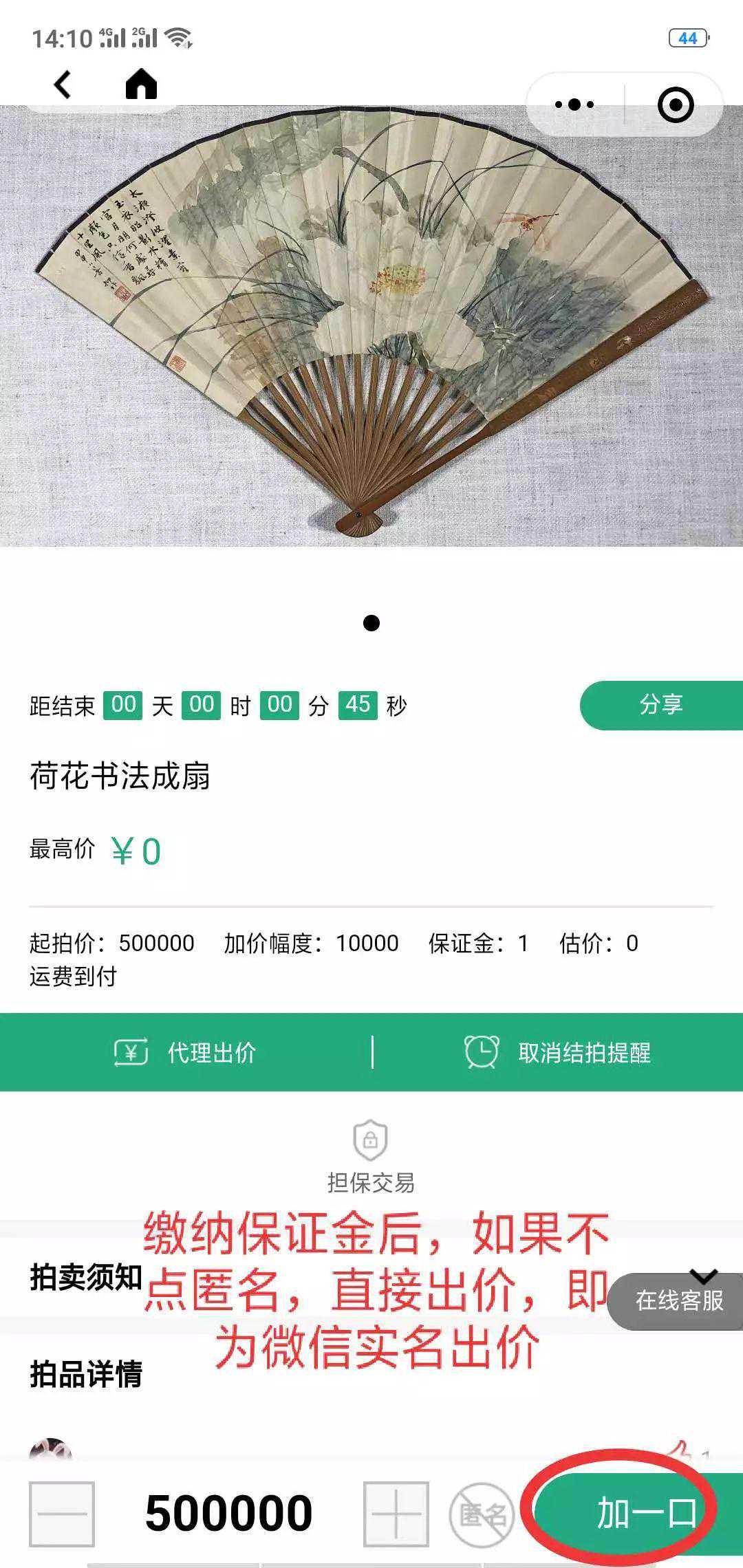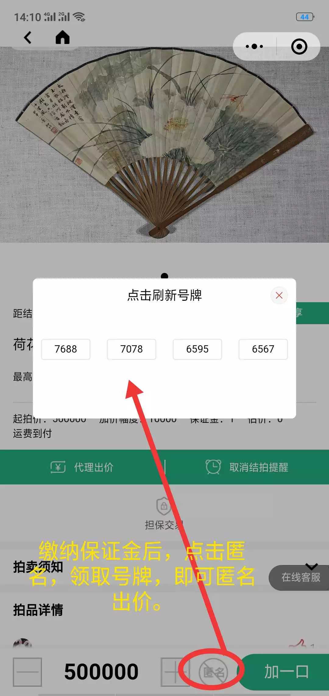 如果想要匿名出价,请先选择匿名按钮,然后选择一个号牌~