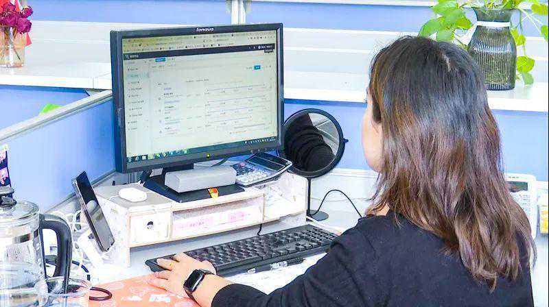 智慧供应链中心智慧服务部开票客服娜迪热·阿里木江日常为客户开发票据,票据内容包含客户购买药品的种类、规格、数量等等信息。以往她需要从网采平台上查看订单信息,再逐一核对药品信息、客户信息,最后进行开票,完成一个订单的票据需要一个小时左右。