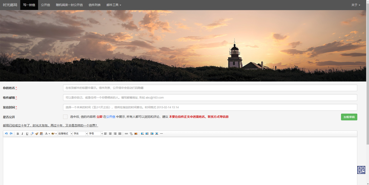 5.时光邮局在这里,你可以给未来的自己、朋友、家人写一封信,设置收信时间、姓名、邮箱等,信件会准时寄到你想寄的账户上,当然你也可以选择公开这封信件,任何登录网站的人都可以看到。