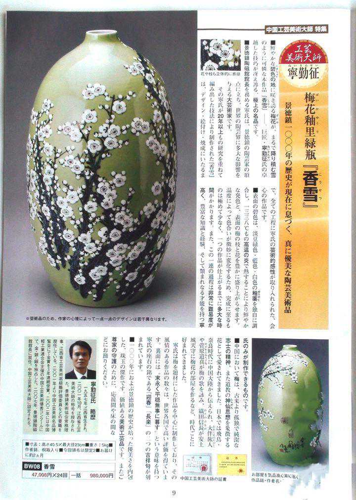 高温颜色釉的制瓷工艺与梅花的完美结合,使得梅花有了不一样的生命力,有了不一样的诠释,绽放出人间绝美,其创作者是真正当之无愧的“梅花大王”,这位梅花大王就是我们中国工艺美术大师——宁勤征。