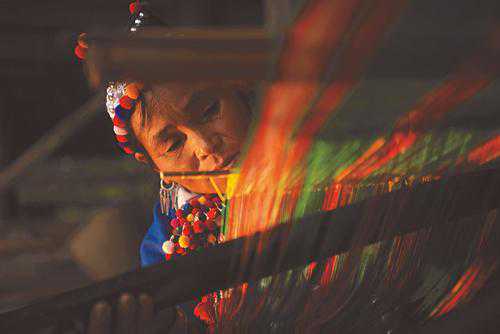 (一)对边疆各族人民传统文化遗产的新观察。沐晓熔的摄影作品《云南少数民族民间工艺影像志》,深入到剑川、通海、华宁、新平、建水、陇川等城镇,足迹遍布云南20个少数民族居住地域,拍摄了陶艺、金属、木雕、刺绣、剪纸、纺织、竹编等不同类型的云南民间手工艺照片数千张,其以光影语言为形式主线的作品,突出云南民间手工艺的丰富性与艺术性。通过对工艺制作过程瞬间的图像收集,唤醒都市快节奏人群对民族手工艺遗产的再认识。刘刚的油画创作《云南文山》选择熟知的当地壮族文化坡芽歌书、“弄娅歪”等非物质文化遗产项目场景,用可以触摸的物质造型再创作,其响亮的油画色彩对比、自由的画面构成方式、畅快的笔触,突出了南方强烈阳光下的干栏式建筑、少数民族节日的热烈现场气氛,渲染一种有生命密码的文化传承。同样,毛祥彦的版画《琢木郎印象·绣花鞋》选用套色木刻,用光色的魅力表现高原的艳丽,大理彝族传统的刺绣和服饰被雕刻得更加有韵味。