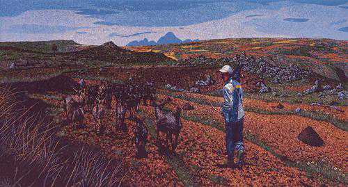 吴新林《云贵高原》65cm×122cm套色木刻2017