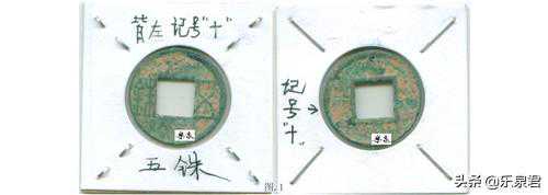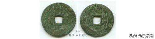 战汉时期,一些钱币上就出现刻划痕,但并非真正意义上的刻花钱,例如半两、五铢钱上出现的刻痕,见附图1:五铢背十,但一般认为那是计数或记录炉别的符号