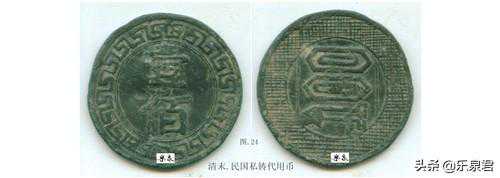 附图23:福在眼前背双蝙蝠钱,是用象牙整体刻制的手工雕刻花钱,时代约晚清,不属刻花钱;图24、壹佰钱,是一枚清末民国民间私刻私铸代用币,不属刻花钱。