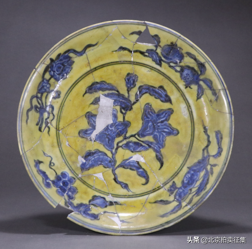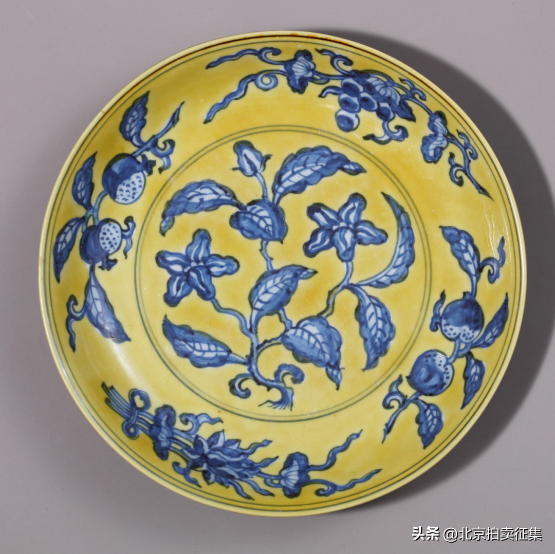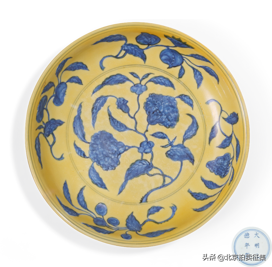 弘治青花依然选用“平等青”料,发色浅淡,纹饰纤弱细腻。弘治官窑以“娇黄釉”驰名,故黄釉地青花品种颇为著称,并沿袭至正德官窑。正德皇帝崇慕伊斯兰文化并信奉佛道,故官窑瓷器喜用阿拉伯文字、八思巴文和道教吉祥图案做装饰。除继续沿用平等青料外,又新采用产自江西的“石子青”料,发色蓝中泛灰。中后期又使用极为昂贵的进口“回青”料。《窥天外乘》载:“回青者出外国,正德间,大铛镇云南,得之……已知其可烧窑器,用之果佳。”