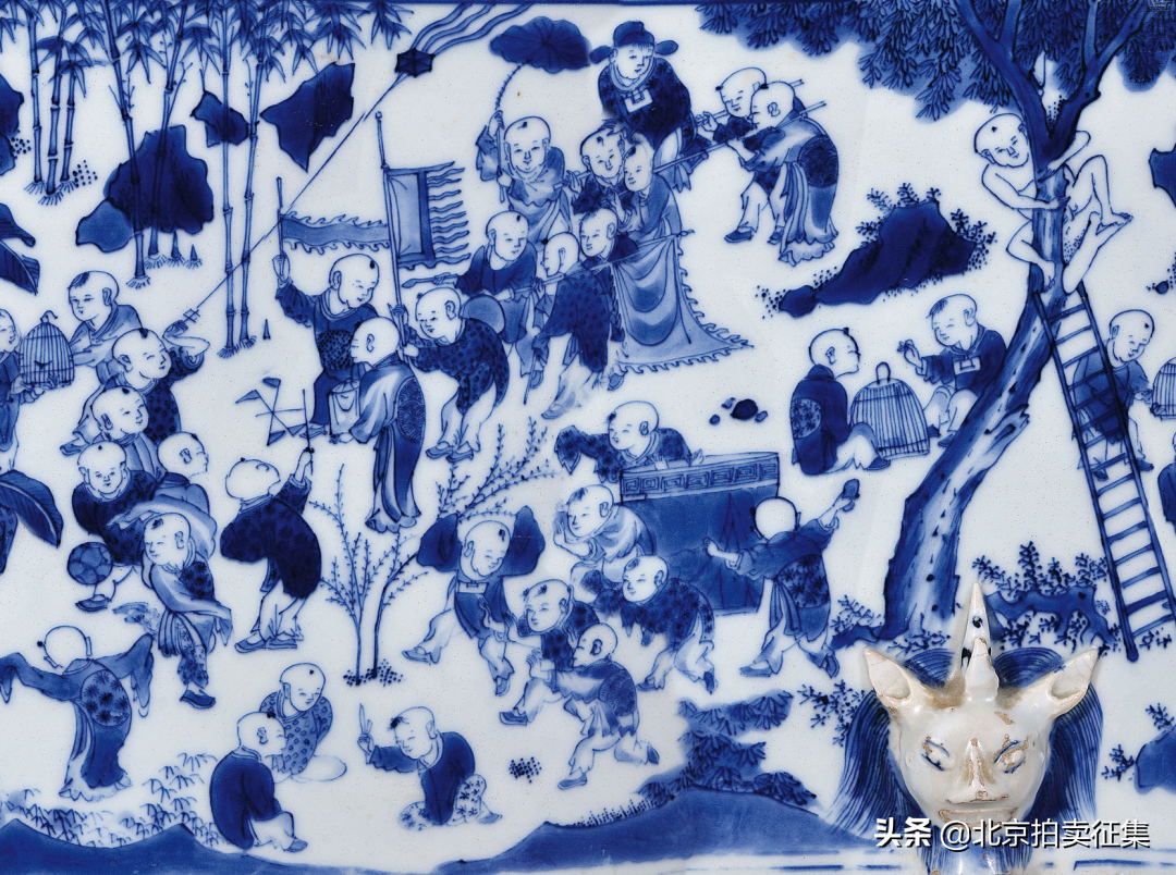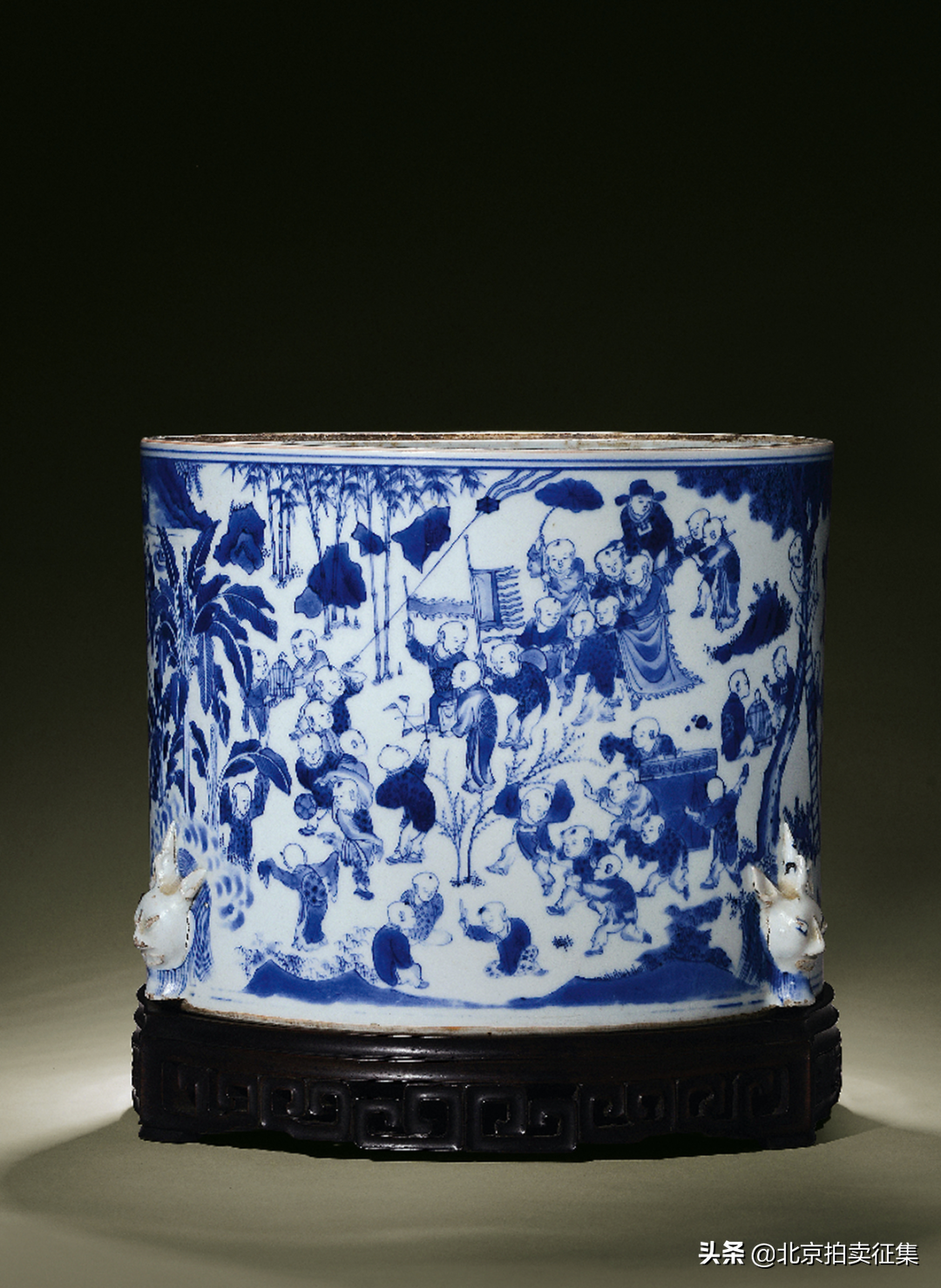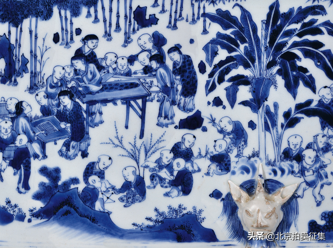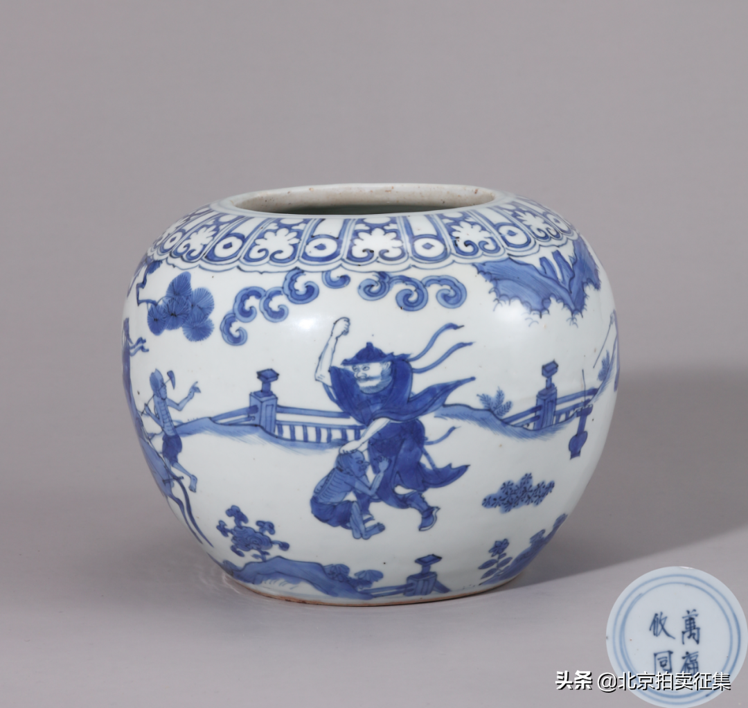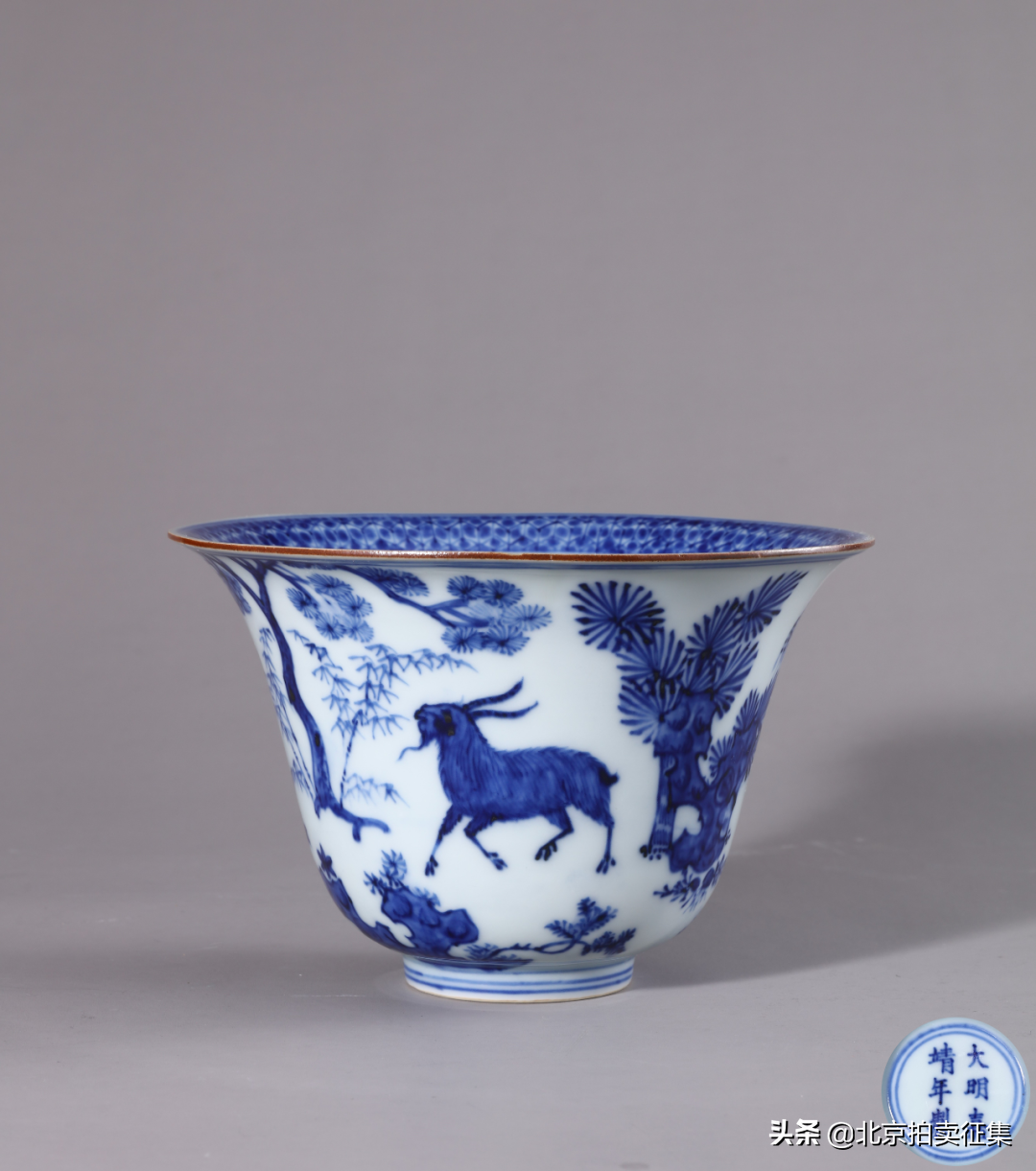 嘉靖、万历时期青花,青花发色浓翠泛紫,恰与永、宣二朝青花器相类,故不乏有众多仿前朝永、宣青花风格器物在仿官器物上出现。这一特殊品种现象,也反映了这一时期瓷器造型、纹饰和绘图技法的多样性。