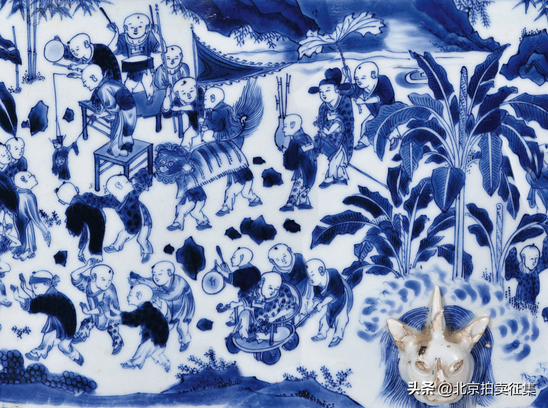 万历朝长达四十八年,早期仍沿用回青料,发色与典型嘉靖、隆庆时期青花颇似。同时又开始使用产自浙江省的钴料,统称为“浙料”,因此万历中后期青花瓷发色多蓝中泛灰,远不及前朝浓艳。明末清初过渡期至康熙年间采用优质的云南“珠明料”,提纯技术精进,青料发色分水清晰,有墨分五色之菁翠靓丽。此时国产料的成色与烧造技术日益成熟。