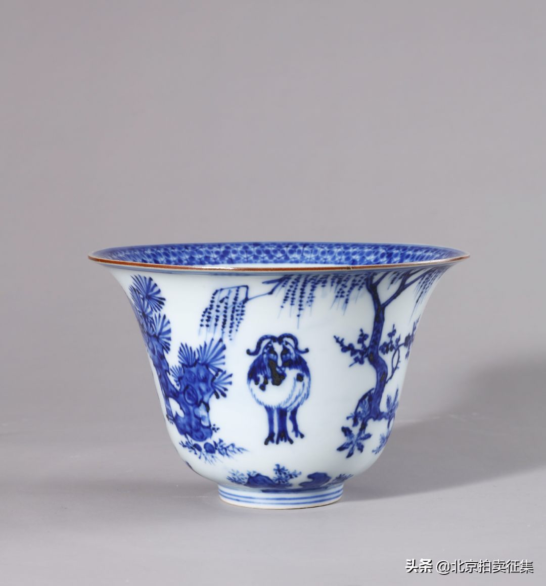 清三代皇帝尤爱古器物,所以仿古器物的烧造一直流行于清廷,青花仿古瓷也不例外。在宫廷《记事档》中有多处记载仿器物的青花瓷器的烧造情况,如记载之“仿宣窑”、“仿成窑”、“仿嘉窑”品种等。清代自康熙朝始,皇帝多次传旨令御窑厂以明宣德青花为楷模,精心仿制,即所谓的“官仿官”。由于用的是云南产的珠明料,故绘画时采用点染技法追慕苏麻离青之铁锈斑效果。另有一部分仿烧器,纹样灵感虽源自明朝,但绘画则有明显区别,带有清官窑的韵味,体现了两朝审美之区别。