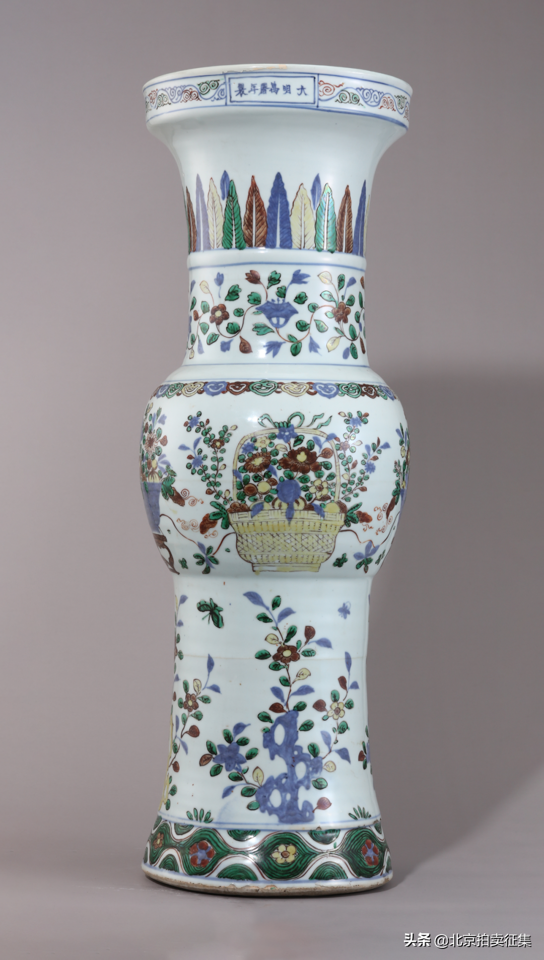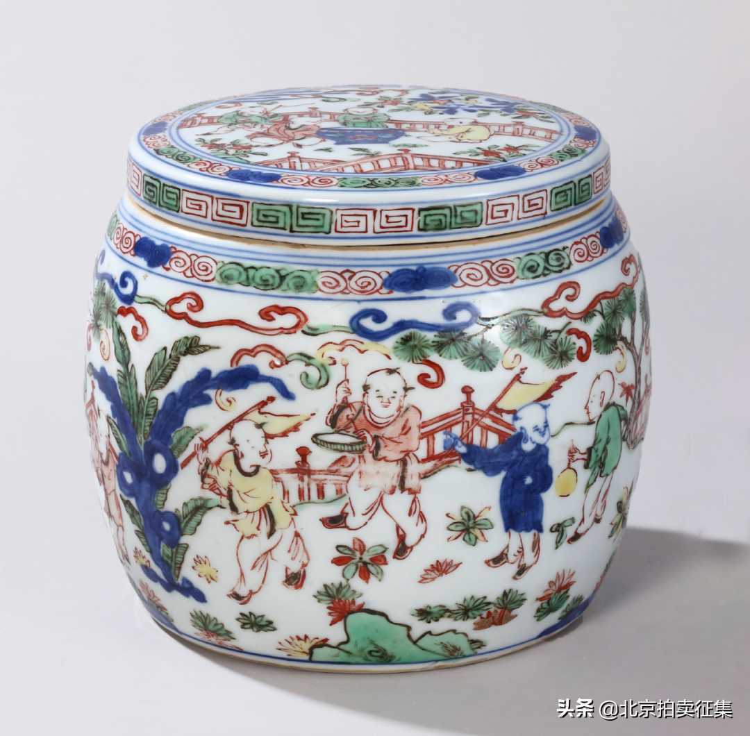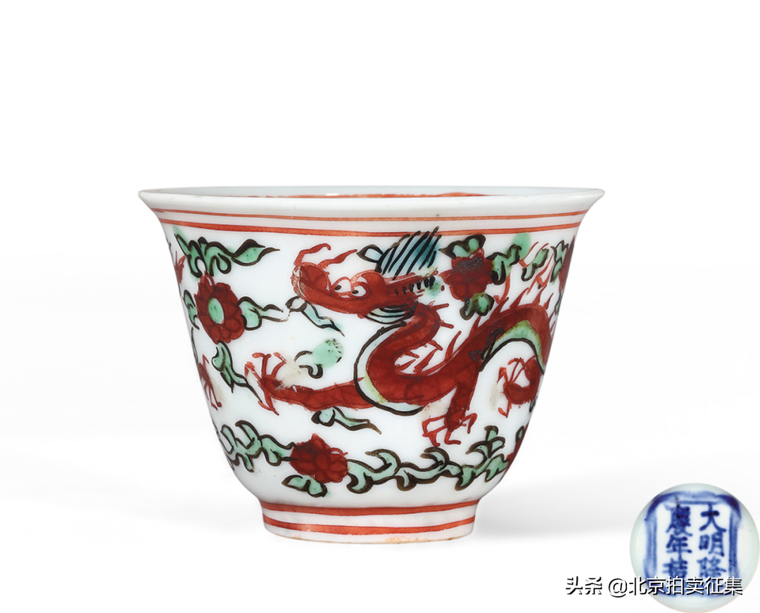 嘉靖彩瓷亦冠绝一时,其彩画之诡奇,绘事之伟丽,称胜于明、清两代。其间创新甚多,诸种色釉相互交融,嘉靖朝最大贡献即以釉下青花与釉上红彩、黄上红、五彩相结合,并促进许多大型器物烧造,纹饰丰富。其中以黄上红者最为名贵,为嘉靖一朝所独有。