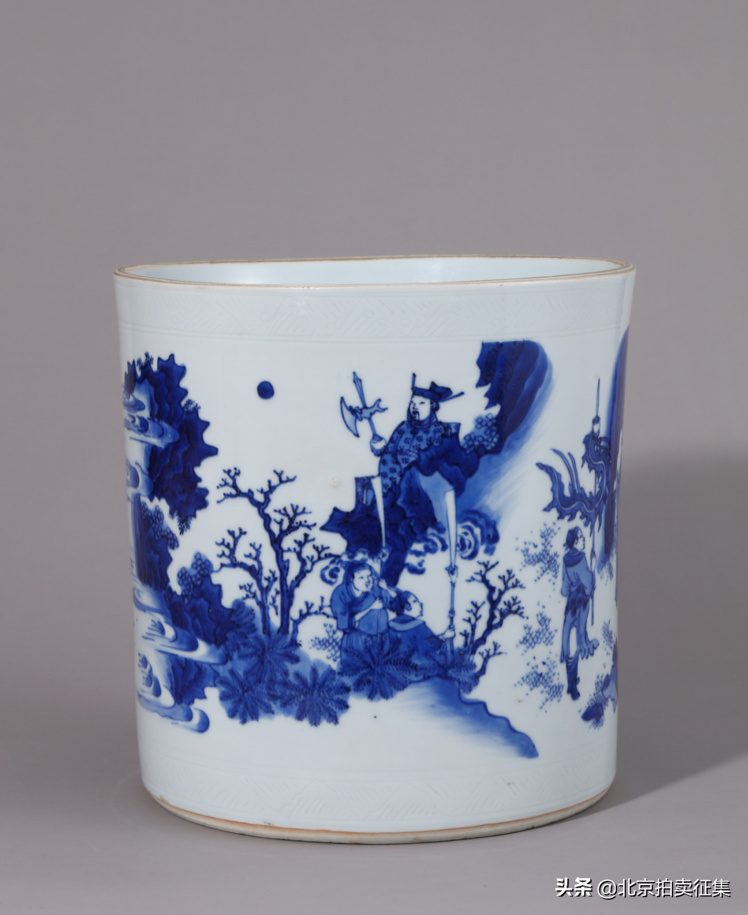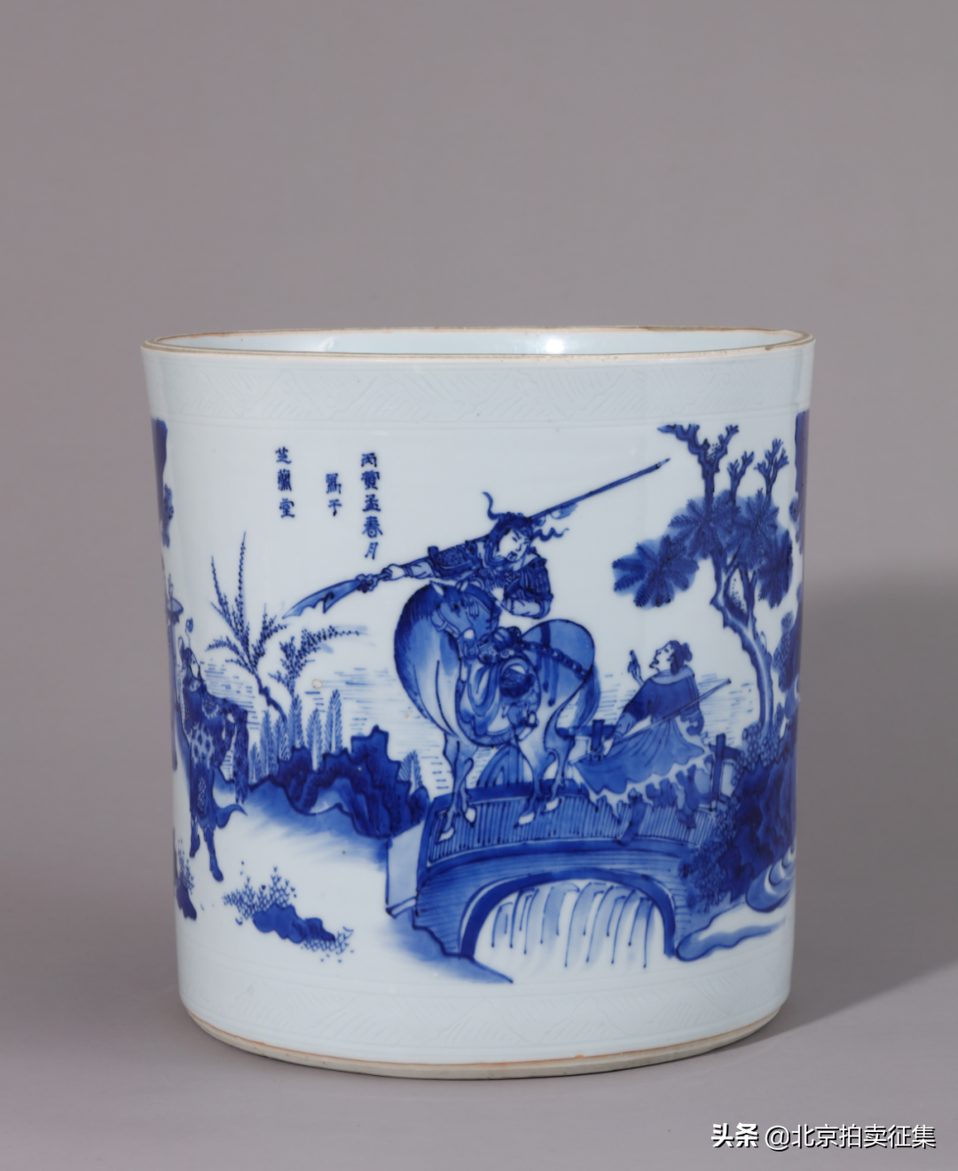 清康熙青花开光人物故事“龙骑兵瓶”一对