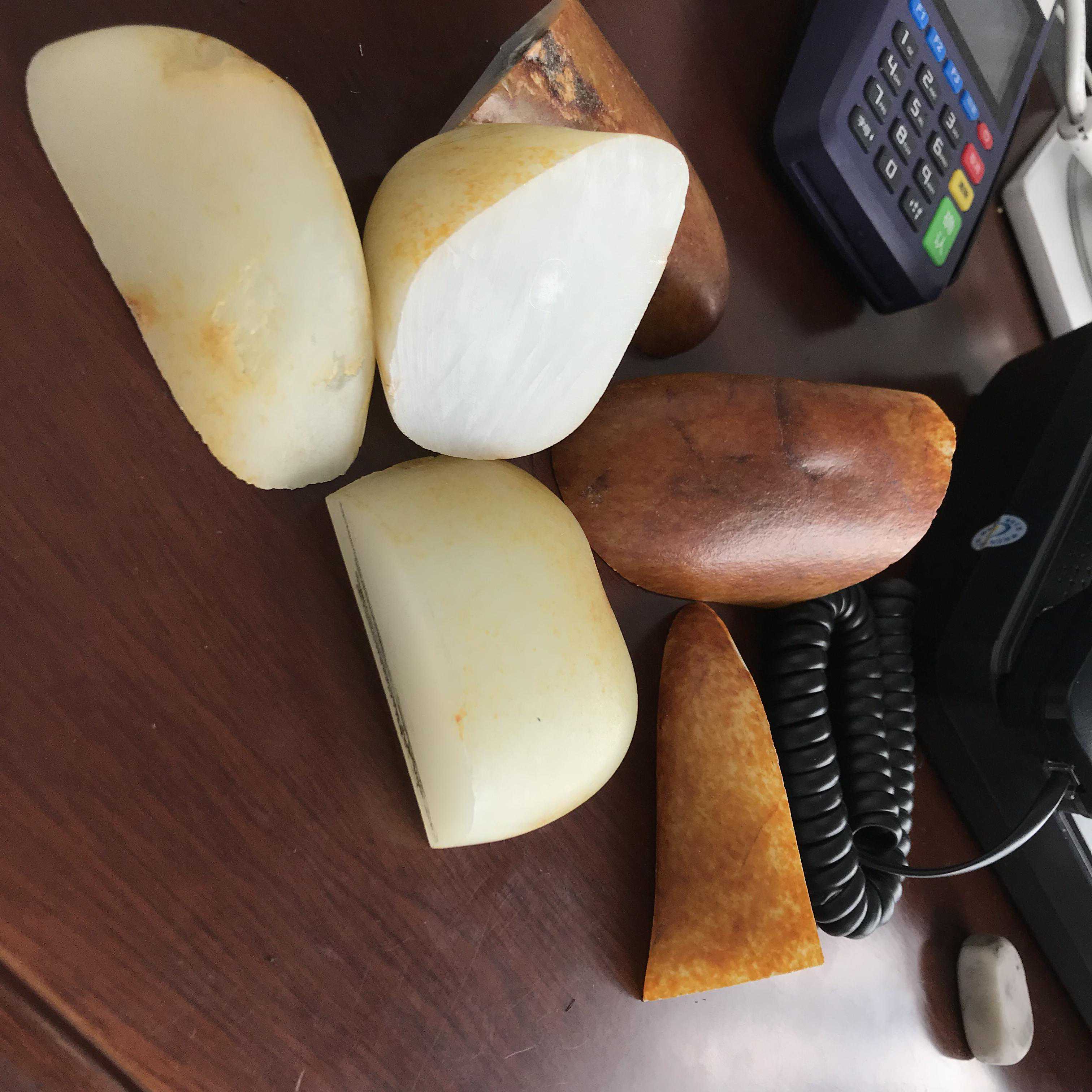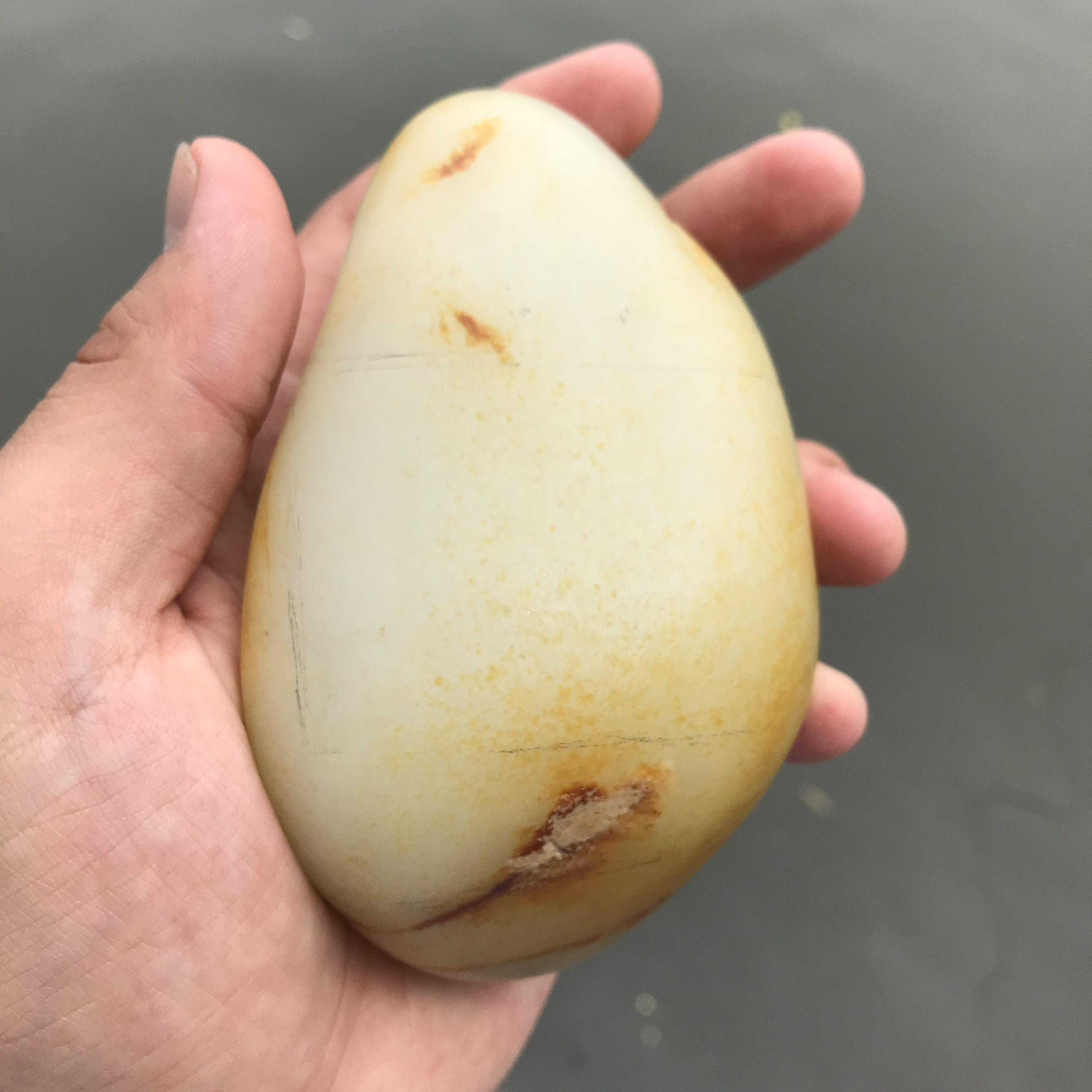 今年刚收的一块原石料,整体重量627.8克,大小还是可以的,这种饱满形强的出手镯就不太现实了。出几款玉牌和吊坠完全不在话下。