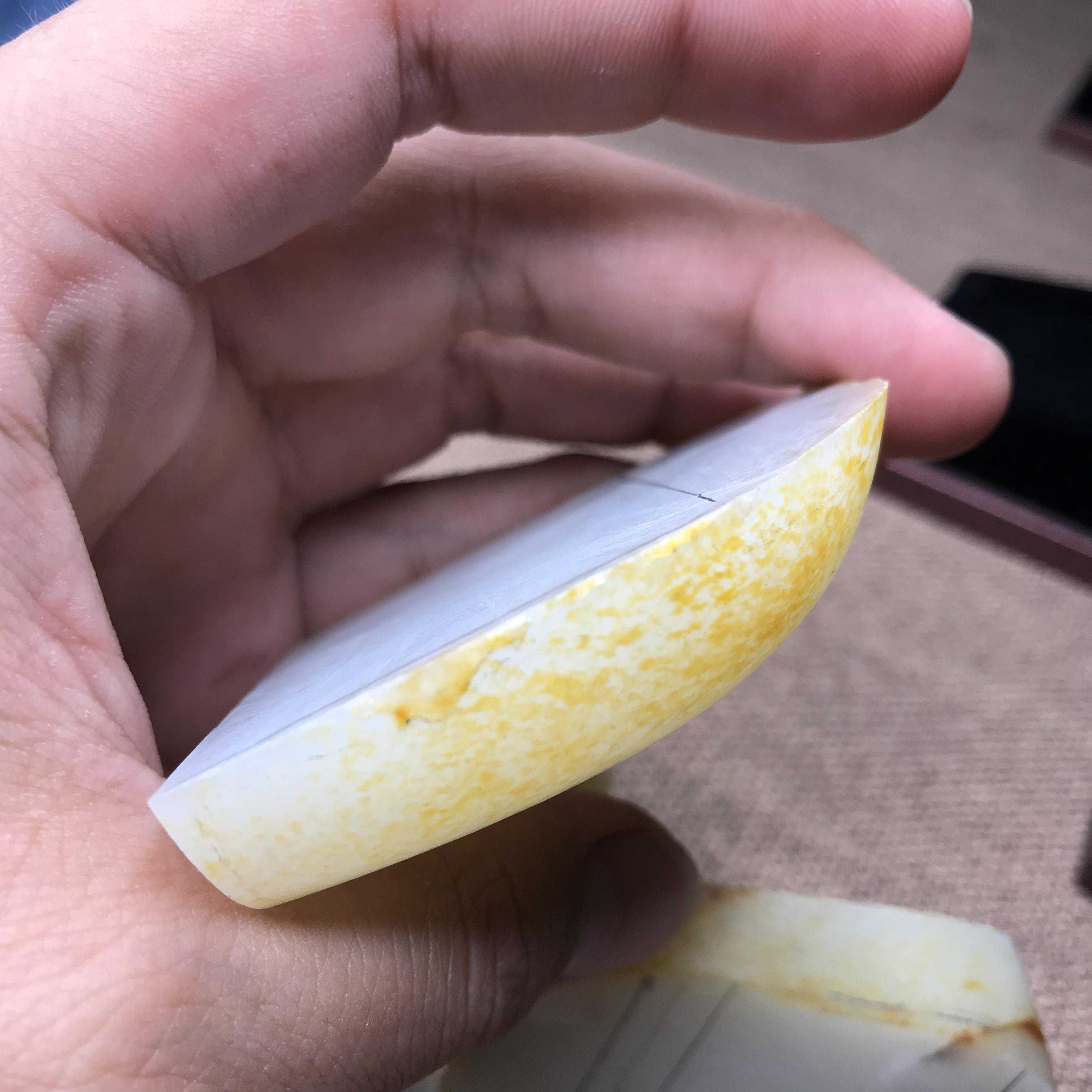 先看下整体效果,整体玉质还是可以的,除了底部有点小裂和僵皮,其他还是很满意的。不知道切开能如何,心情很是纠结。