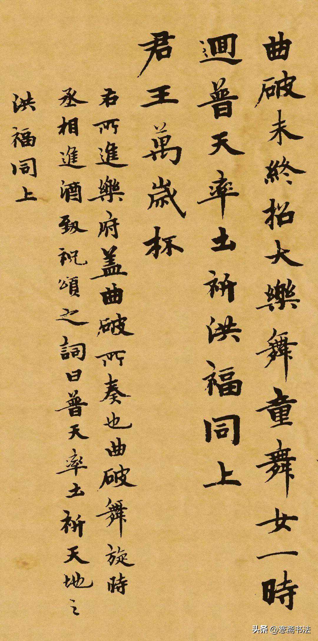 曲破未终招大乐,舞童舞女一时迴。普天率土祈洪福,同上君王万岁杯。