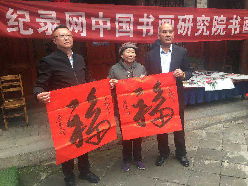 纪录网中国书画研究院执行院长徐选林激动地说,在重阳节送寿意义不同,我们书画院的老师们,不辞辛苦,把自己的墨宝,把自己的祝福送给新城镇的父老乡情们,也是我们书画研究院做的一项公益事业。今后,纪录网中国书画研究院会在公益的路上继续前行,会更加努力做出贡献。