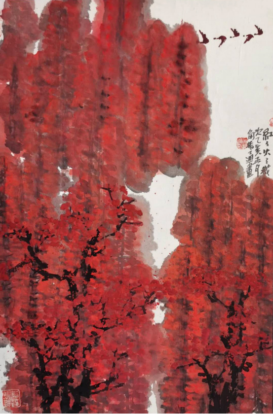 掌握了传统画法的基础之后,角振通习古却不泥古,他的画风总有一种变化,用一位专家的话来说,那变化之快“仿佛一段悠扬的古典音乐,正行走在如诉如泣间,蓦地嘎然而止,不待听者喘息又以路急转直下,神采飞扬地将一腔灿烂与激情径自推到听者耳边,直令听者瞠目,待回过神来又不禁报以热烈的掌声。”他在磨练笔墨的过程中,为实现自己的艺术理想奠定了扎实的基础。