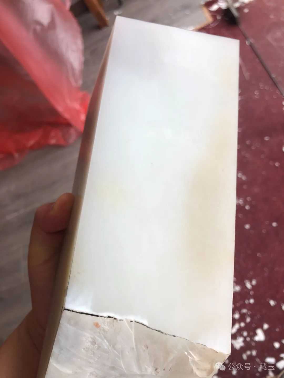 有时候一个表面看起来还不错的料子,切开后里面可能品质比较差: