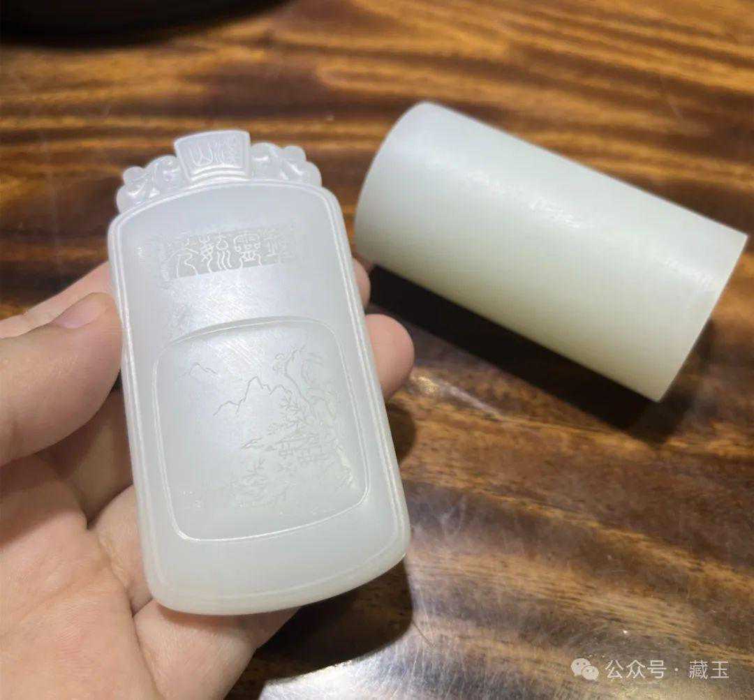 这个山料看起来很普通,但看实物,它的白度很好,而且重点是,这个料没有一点结构,玉质感也十分顶级。