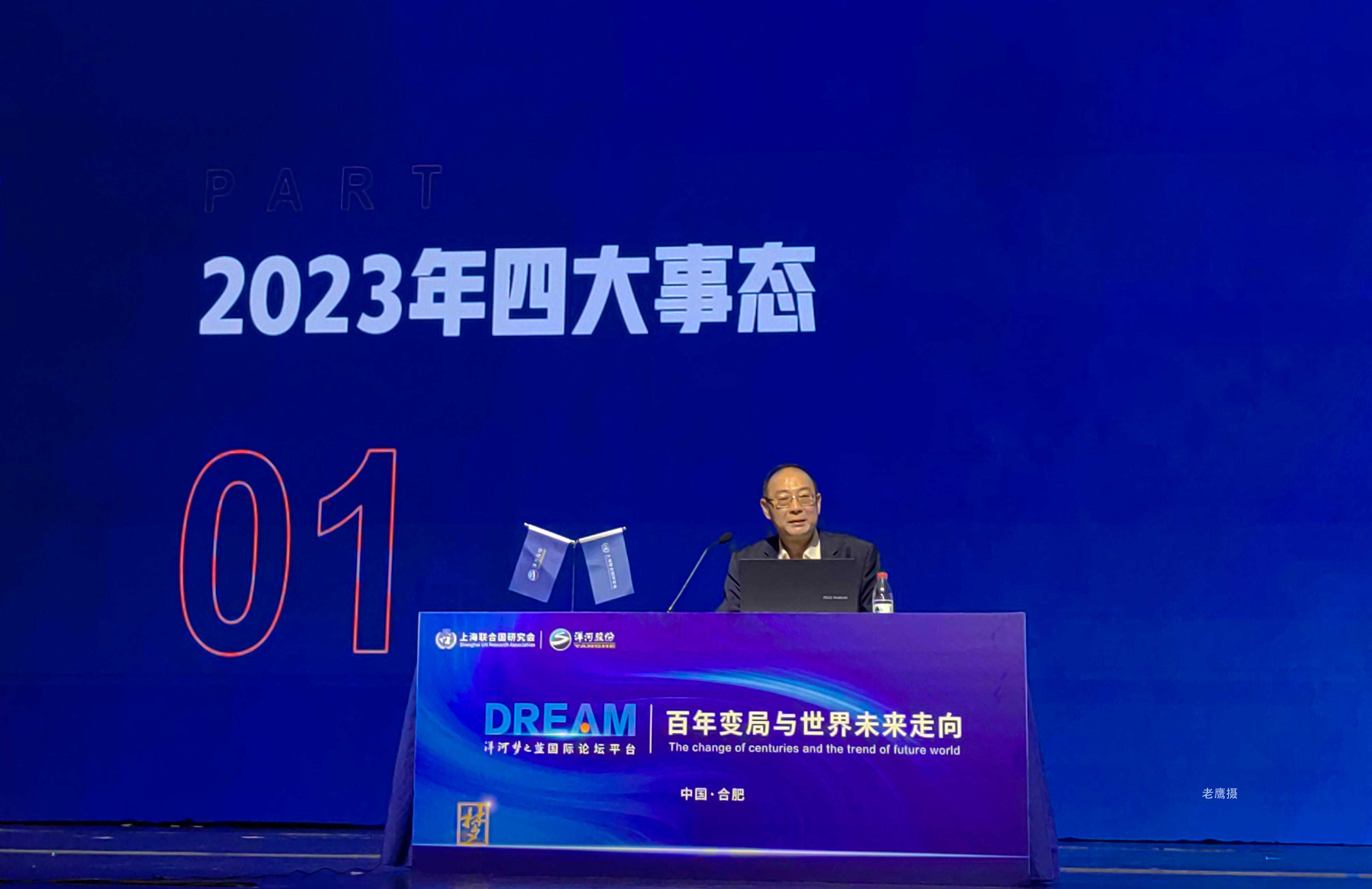 在近三个小时的演讲中,金灿荣教授围绕“百年变局与世界未来走向”这一主题,总结了2023年的四大事态,围绕俄乌冲突加剧、美国加大对中国施压--新冷战开始、世界经济持续低迷、地区热点冲突不断热点问题进行了比较详细的解读,还得出以美国为主导的新自由主义哲学为基础的全球化告一段落、以俄美对抗、中美竞争为标志,大国关系恶化,新冷战成为现实,地缘政治重新紧张、国家间科技竞争加剧、西方和非西方鸿沟加大、世界各国内部及国际社会思想混乱、全球气候变化加剧六大世界趋势。他认为,导致这一变化的根本原因在于二十大报告中指出的“当前,世界之变、时代之变、历史之变正以前所未有的方式展开”,世界进入了“百年未有之大变局”。人类社会充满了前所未有的挑战,百年之变的本质是世界进入了“大争之世”。