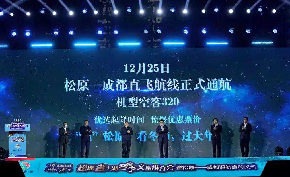 “川”越新航线冰湖庆“渔”年松原查干湖冬季文旅推介会暨松原—成都通航启动仪式于12月10日19:30分在成都市盛大启幕。12月25日,成都→松原直飞航线首航正式开启。