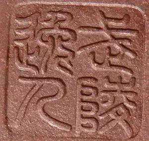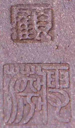 “足吾所好玩而老焉”、“得一日闲为我福”,为顾景洲成名後所用艺名印款,1948年,顾景洲在沪上仿制时大彬《僧帽壶》、陈鸣远《四方壶》获得成功。