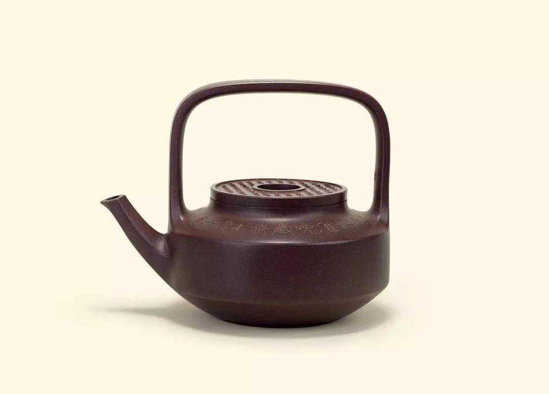 1956年紫砂工场改为宜兴紫砂工艺厂,顾景舟与带队来厂实习的中央工艺美术院(今清华大学艺术与设计学院)高庄教授结为知交,两人合作《提壁壶》。