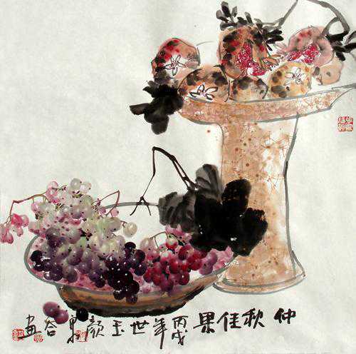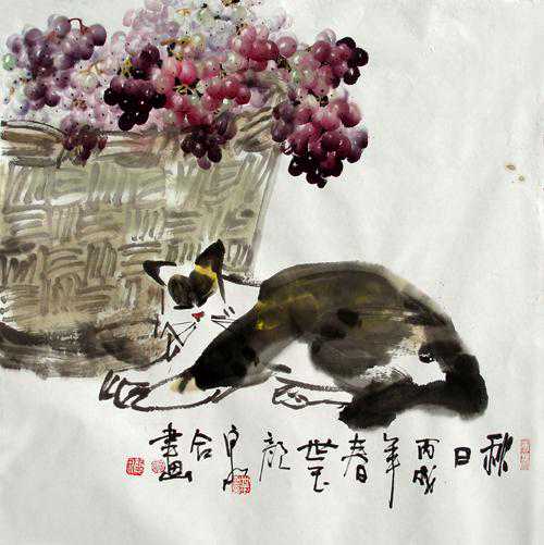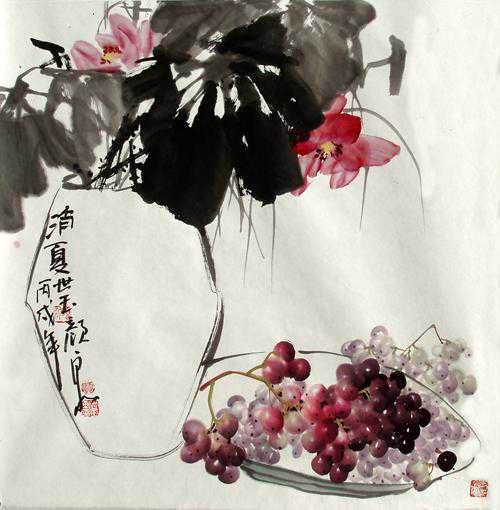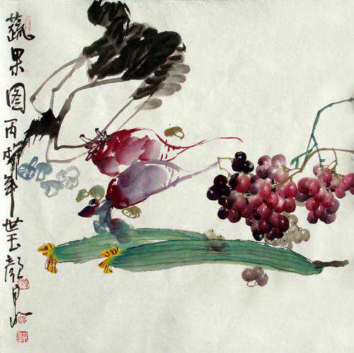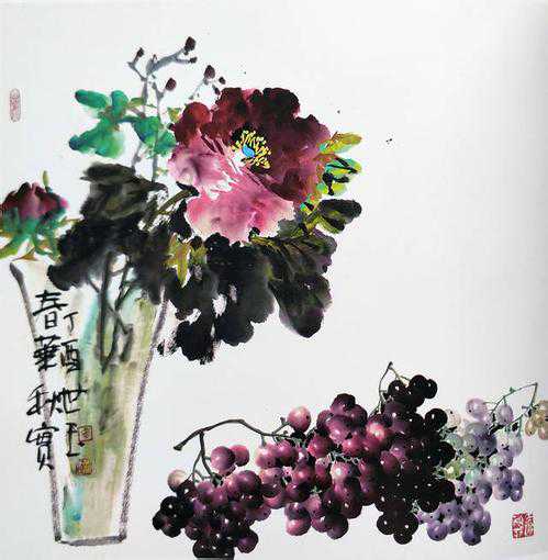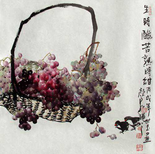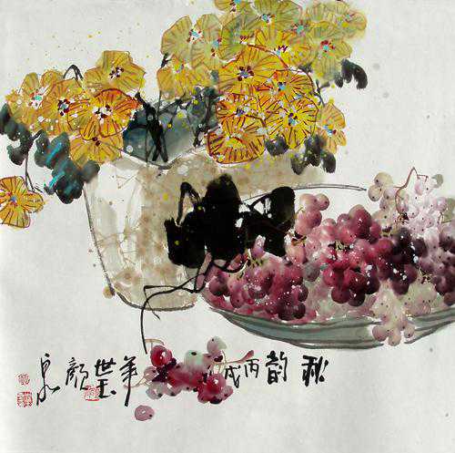 贾世玉,颜泉的风夫人。现为香港收藏家画轩签约画师,清华大学美术学院颜泉花鸟画高研班助教。她专攻写意花鸟,尤善画葡萄。她笔下的葡萄,笔墨精炼,神形兼备,常常以枯墨、浓墨的线条勾勒出藤筐,以饱含水分的紫墨色彩点出浓淡层次的粒粒葡萄,再用湿墨、淡墨大块面地画藤叶,这种点、线、面的有机结合,使她的葡萄画不流俗,情趣盎然。无论是盛装在藤筐里的静物葡萄,还是悬挂在藤蔓上的鲜活葡萄,都给人以灵动之感,整个画面像田园诗一样清新,为画坛赞赏。