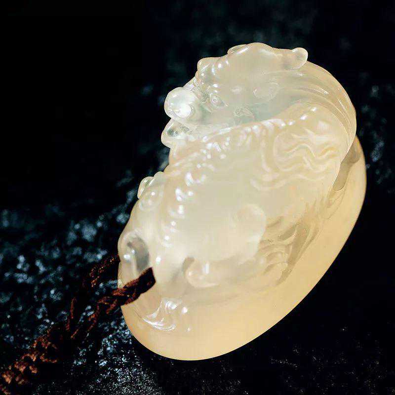 坑头玛瑙冻顾名思义,就是色彩像是玛瑙那样的石种,寿山石中的玛瑙冻,有产自坑头的,也有产自高山的,也有产自坑头的。坑头玛瑙冻的色彩,最为常见的是晶莹洁白的底子上,有泼墨般的棕黑色纹理,虽然没有高山玛瑙冻那般色彩瑰丽、富有变化,但其气质典雅如水墨画一般,也很给人美的感受。