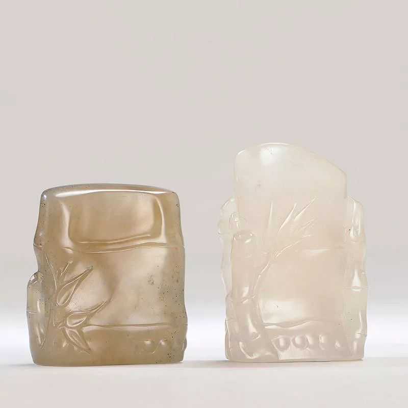 何光速坑头玛瑙冻石《劲节清操》松竹对章