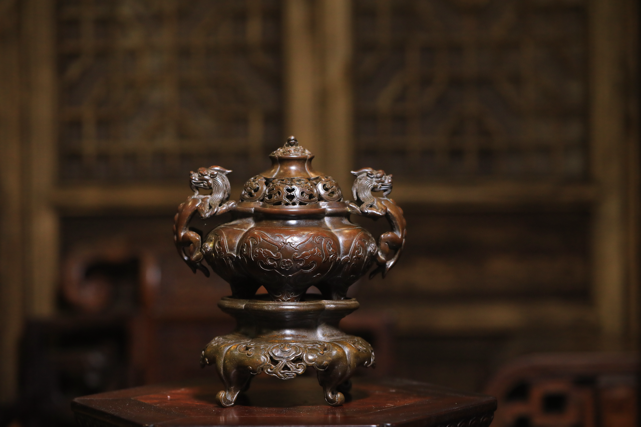 陈巧生通过铜炉,认识了不少收藏家朋友。其中一位令他印象深刻:“好多人来收藏我的炉。有一个收藏家要我做一个炉,上面加上他子女的名字,要作为传家宝流传下去,很有意思。”这让陈巧生觉得,铜炉背后的文化意义得到了传承。“我们中国的炉,在古代是达官贵人在宫廷里才能用到的。把炉放在一个空间里,可以通过香炉来激活空间的磁场,不仅具有欣赏价值,还有传承的价值。”