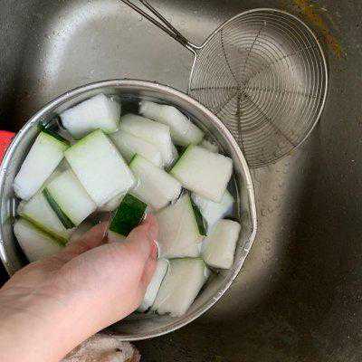 7、鸡肉用筷子插一下,熟了以后放冬瓜再炖一会,鸡肉多炖一会没关系,冬瓜很好熟的