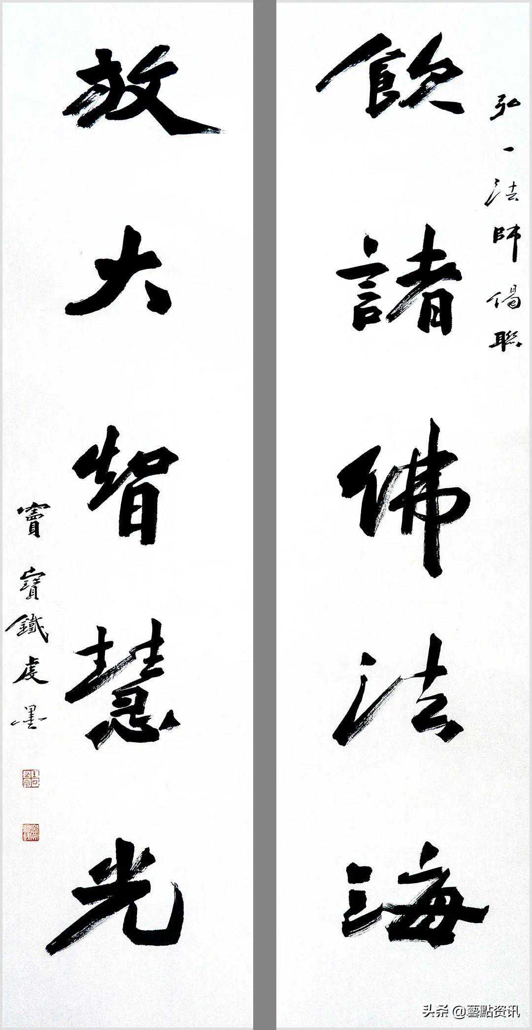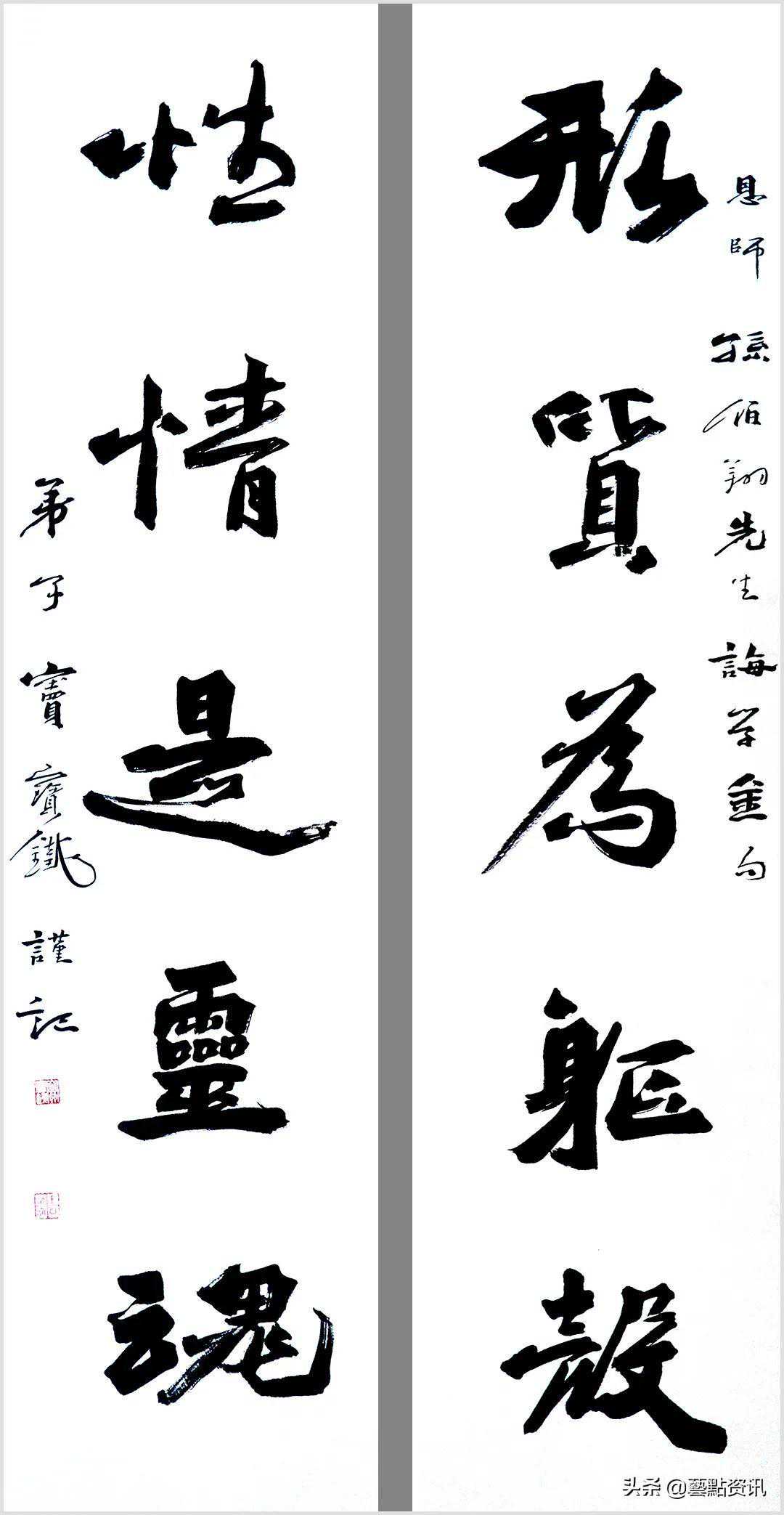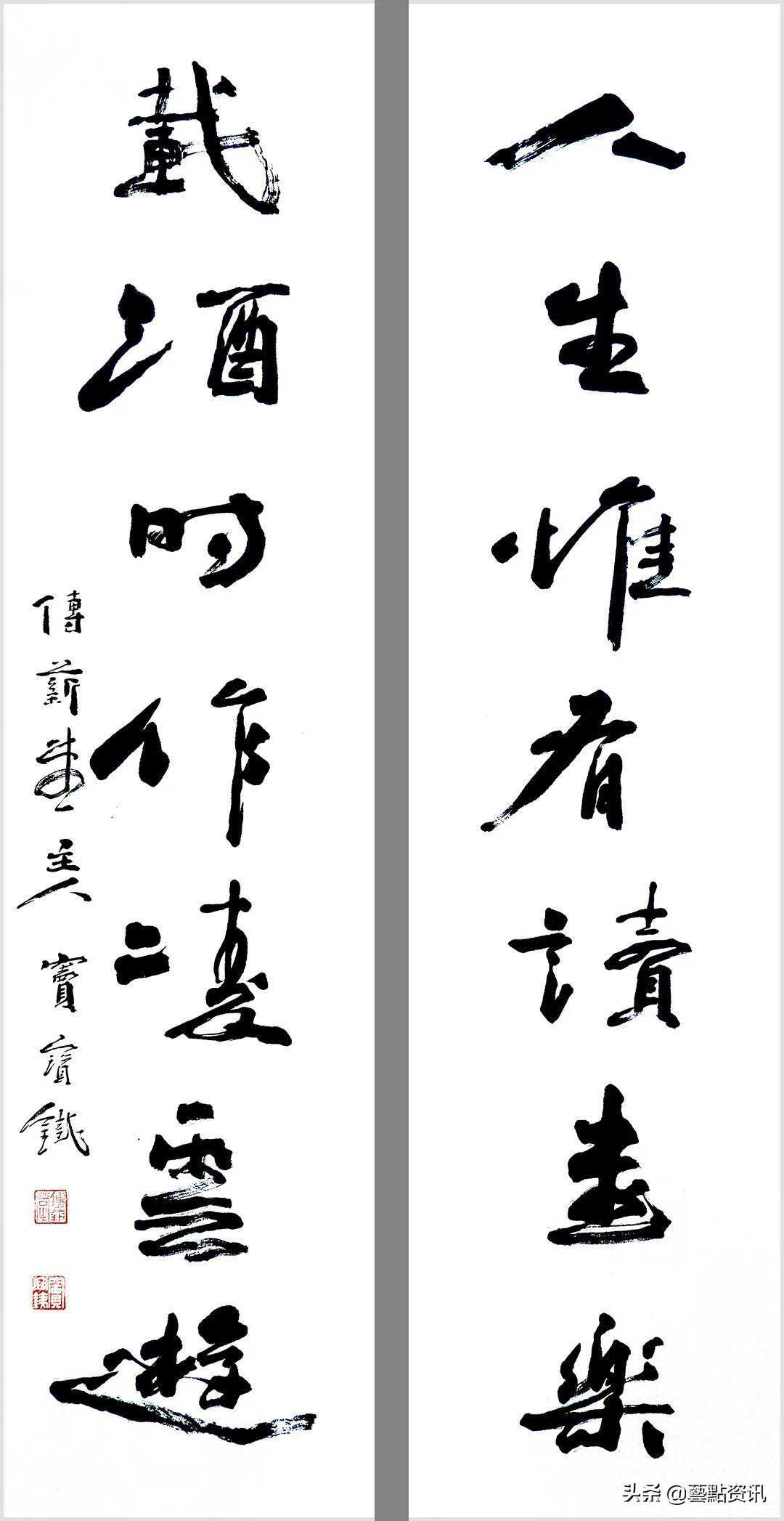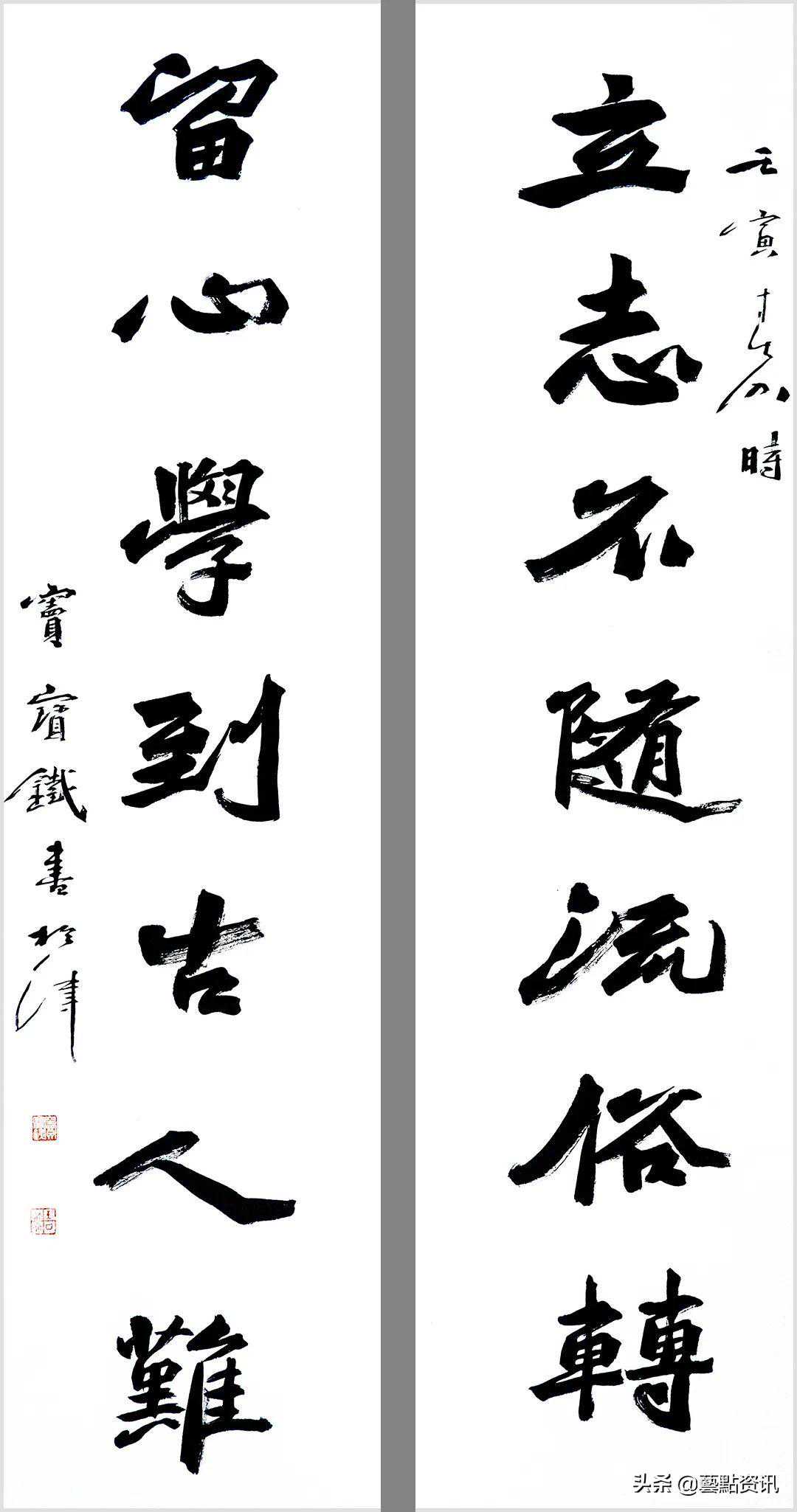 中国书法屹立于世界艺术之林,数千年一脉相承,铸就了中华民族的灵魂。唐人孙过庭“古不乖时,今不同弊”,元赵孟頫“用笔为上,结字须工”,当代书法大家孙伯翔先生“崇尚经典,汲古出新”等圣贤书学精要,是窦宝铁老师书法学习的理论基础。他追随恩师数十载,亦步亦趋,在书法学习的道路上孜孜以求,不断前行,并博取众家之长,融会贯通,渐渐形成自己的书风面貌。今选刊楹联作品30幅,与大家分享。