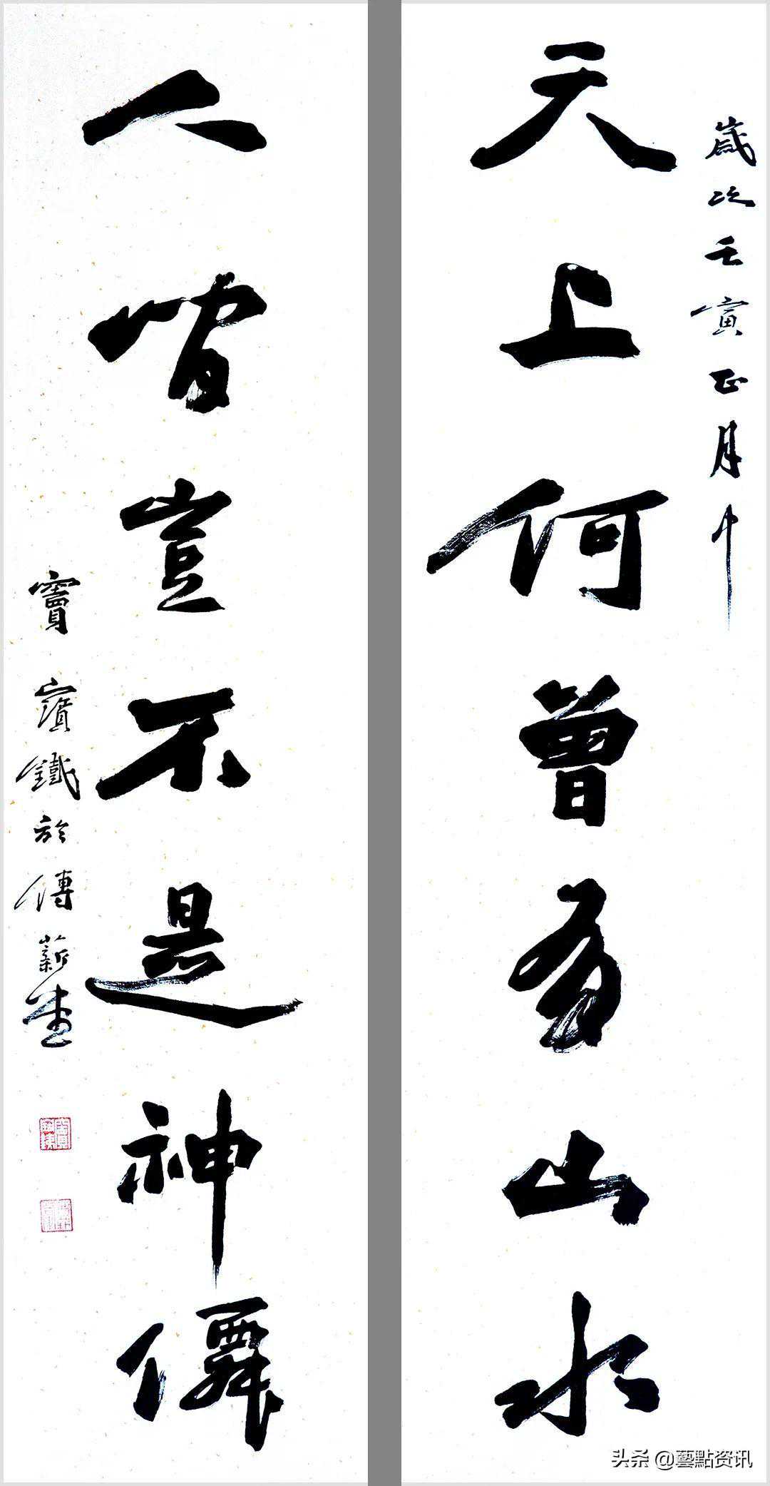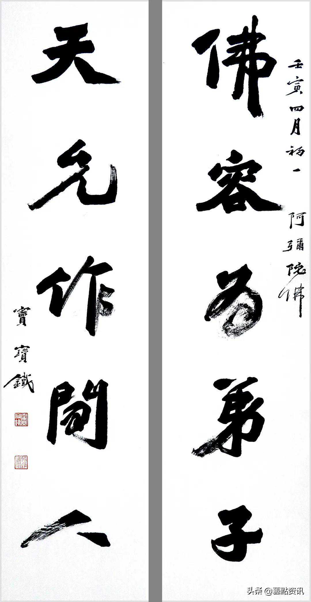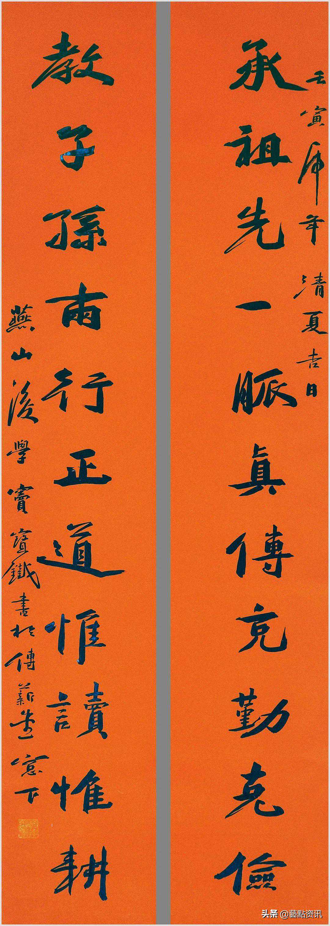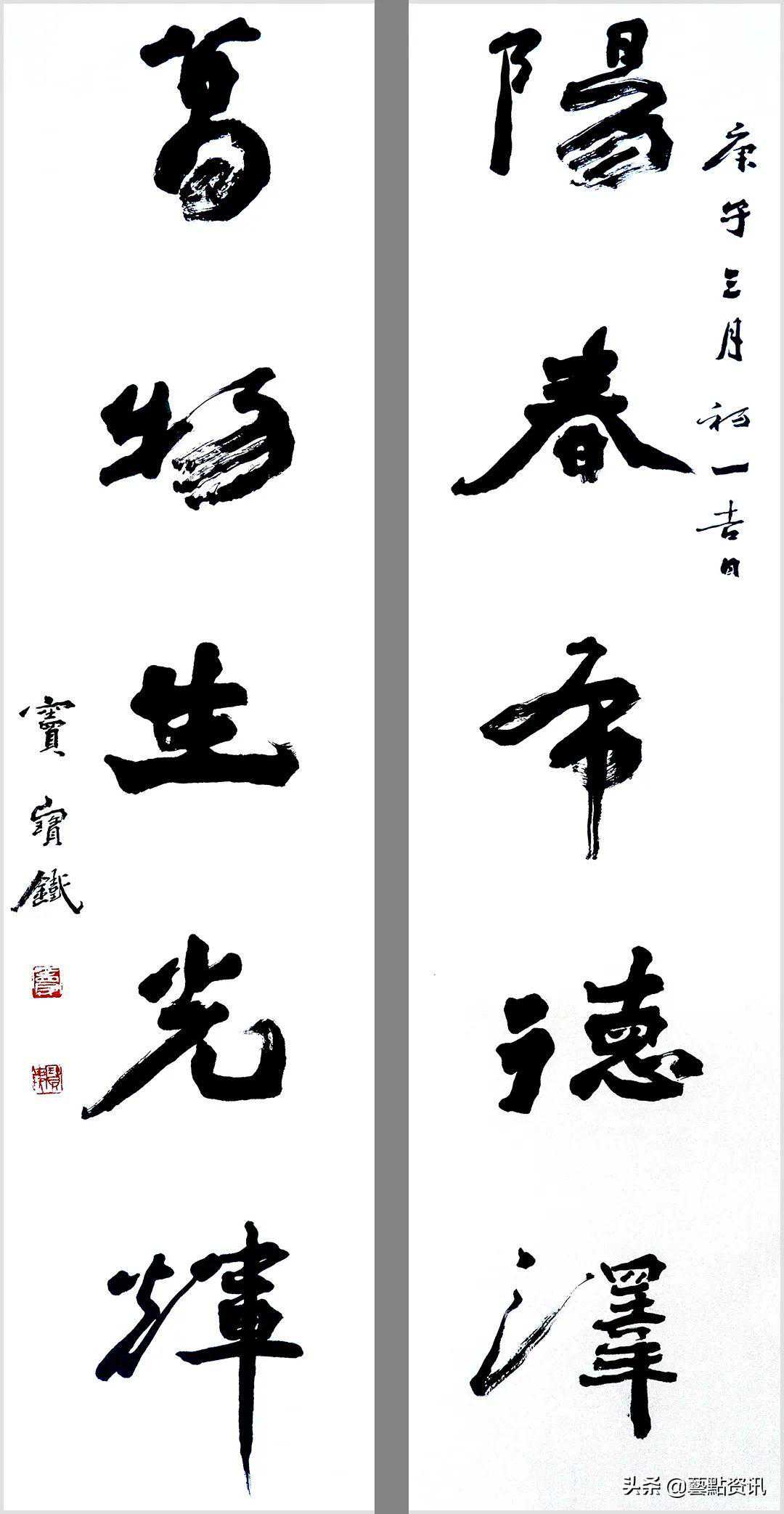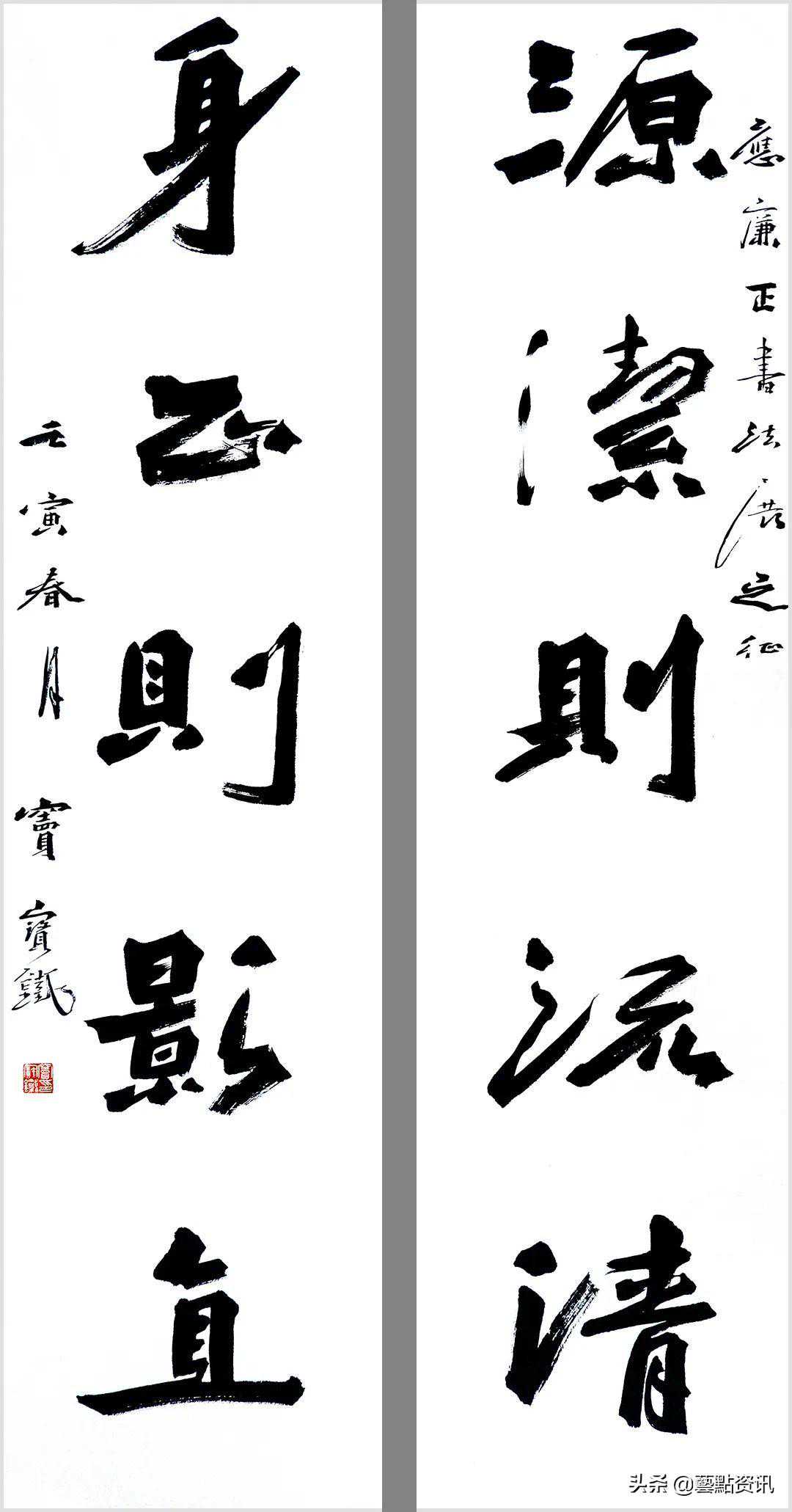 中国书法屹立于世界艺术之林,数千年一脉相承,铸就了中华民族的灵魂。唐人孙过庭“古不乖时,今不同弊”,元赵孟頫“用笔为上,结字须工”,当代书法大家孙伯翔先生“崇尚经典,汲古出新”等圣贤书学精要,是窦宝铁老师书法学习的理论基础。他追随恩师数十载,亦步亦趋,在书法学习的道路上孜孜以求,不断前行,并博取众家之长,融会贯通,渐渐形成自己的书风面貌。今选刊楹联作品30幅,与大家分享。