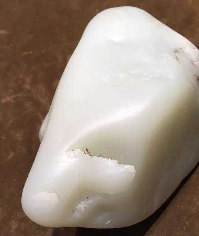 但也并不一定,光白籽没有皮色的原因有很多,或许是因为玉质细腻,矿物质难以沁入,也可能是因为光白籽形成的地方矿物质成分少,所以没有形成皮色。