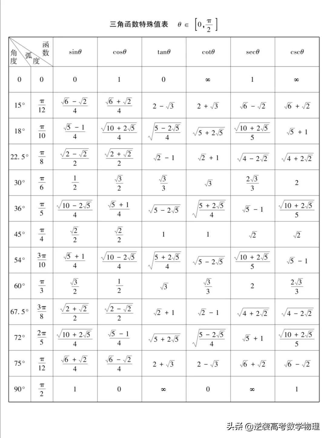 高考中,三角函数做为最重要的一块内容,每年高考都占很大的分值,学好三角函数,首先得先背会特殊角的三角函数值