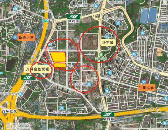 土拍地块紧邻万科金色悦城和华宇城两个西区大盘;