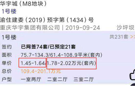 华宇城目前在售高层建面单价是14500-16400元/平,换算成套内是17800-20200元/平;