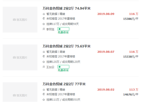 链家网二手房情况,金色悦城高层挂牌均价15000,洋房要17000-20000左右;华宇城二手房均价17000左右,部分别墅类产品拉高了均价;