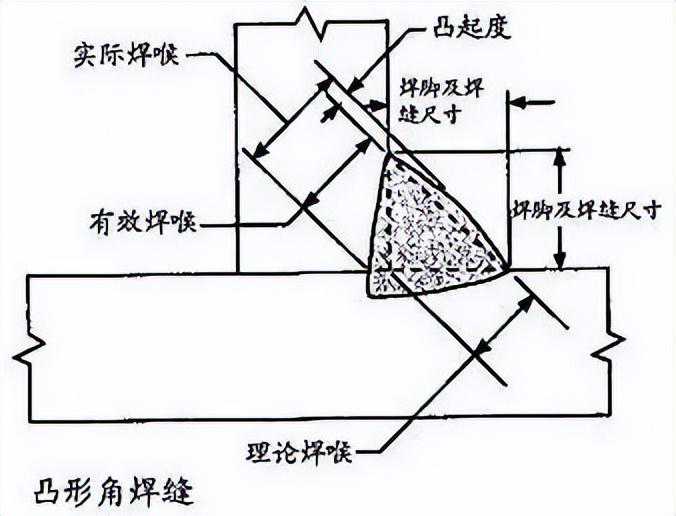 有效焊喉:减去凸起部分,从角焊缝表面到焊根的最小距离。