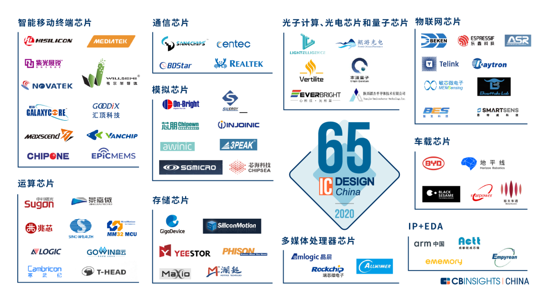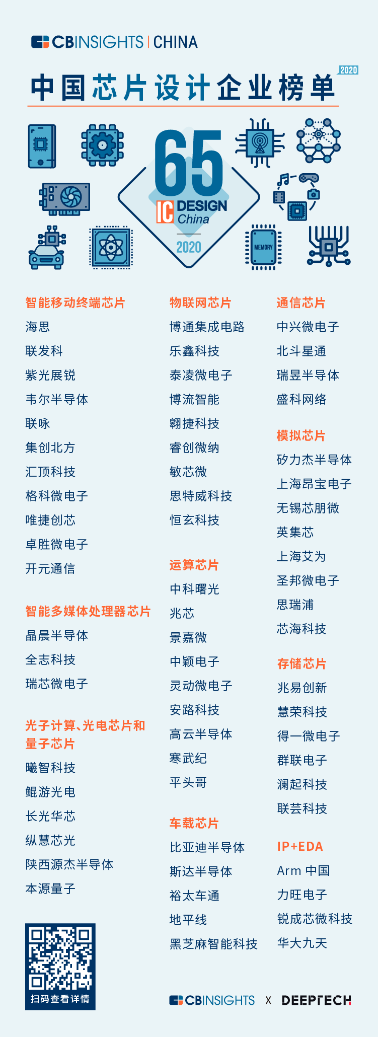 这是一份关于中国芯片设计的头部企业图景,也是一个上市公司与初创公司共同开拓的市场版图,这其中有借市场力量催生出来的上市公司,也有在政策支持下成长起来的创业公司,其中不乏相对老牌的台企,也不乏高校背书的新兴创企。