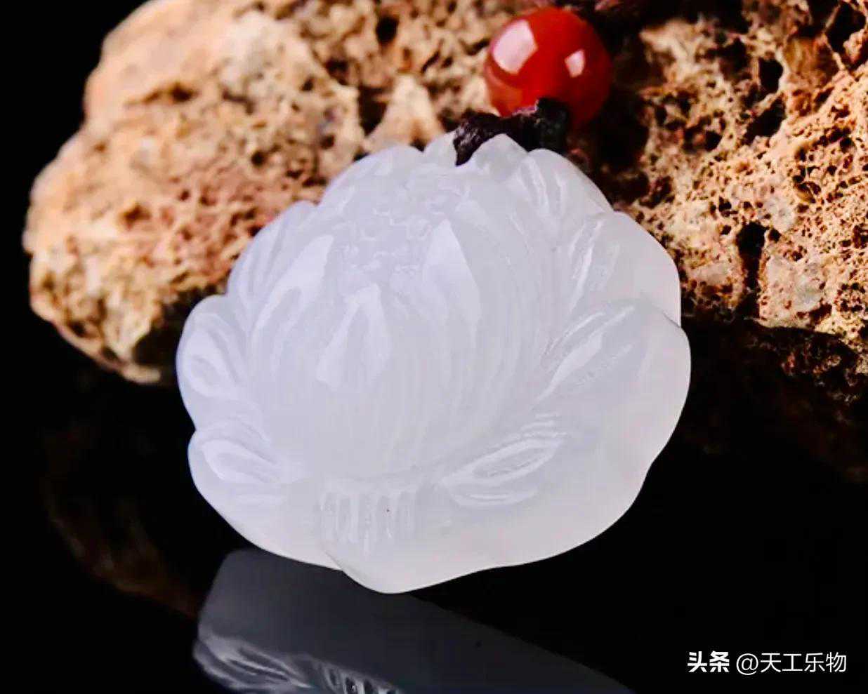天山白玉同样产自新疆,同样洁白温润,却是一种天然的石英岩玉。这是一种80年代才发现的石英岩白玉,当地人也称之为“新疆白玉”。