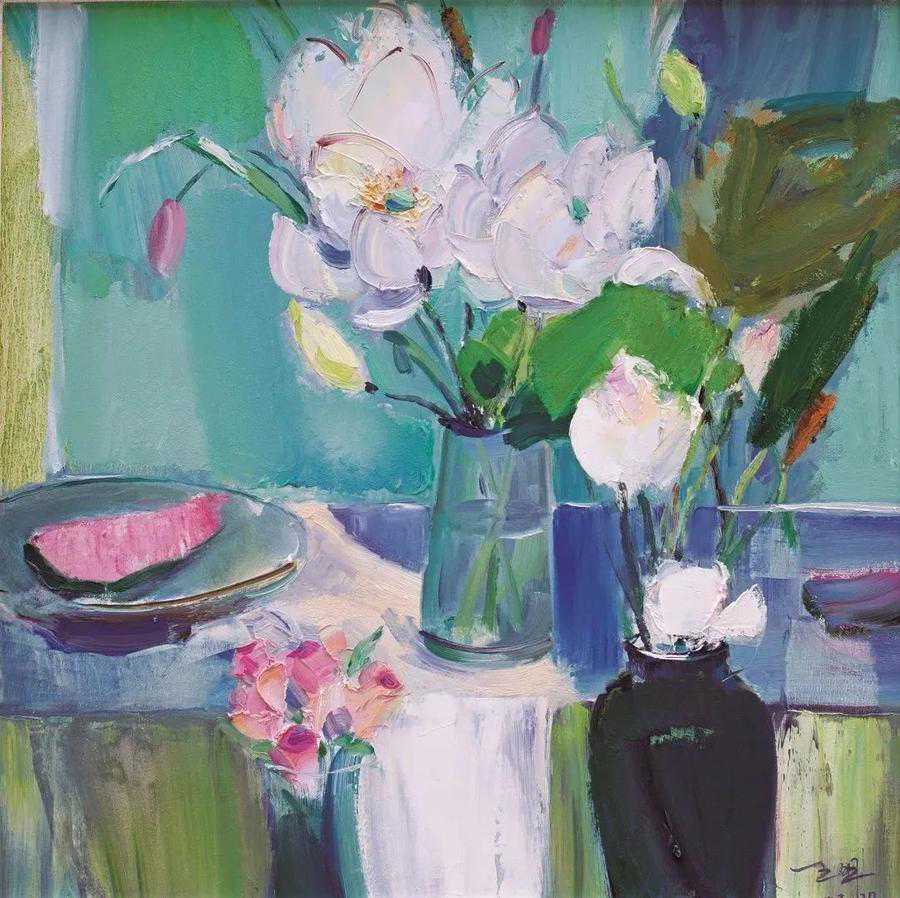 《荷塘清韵》布面油画薛宝琦