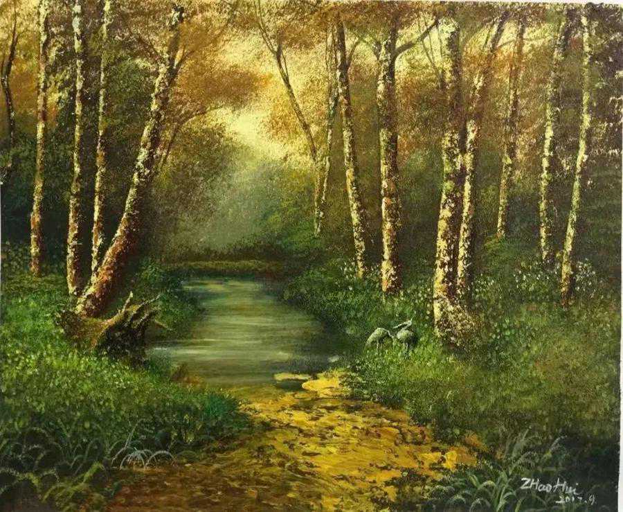 擅长仿古山水小品、意境禅意画