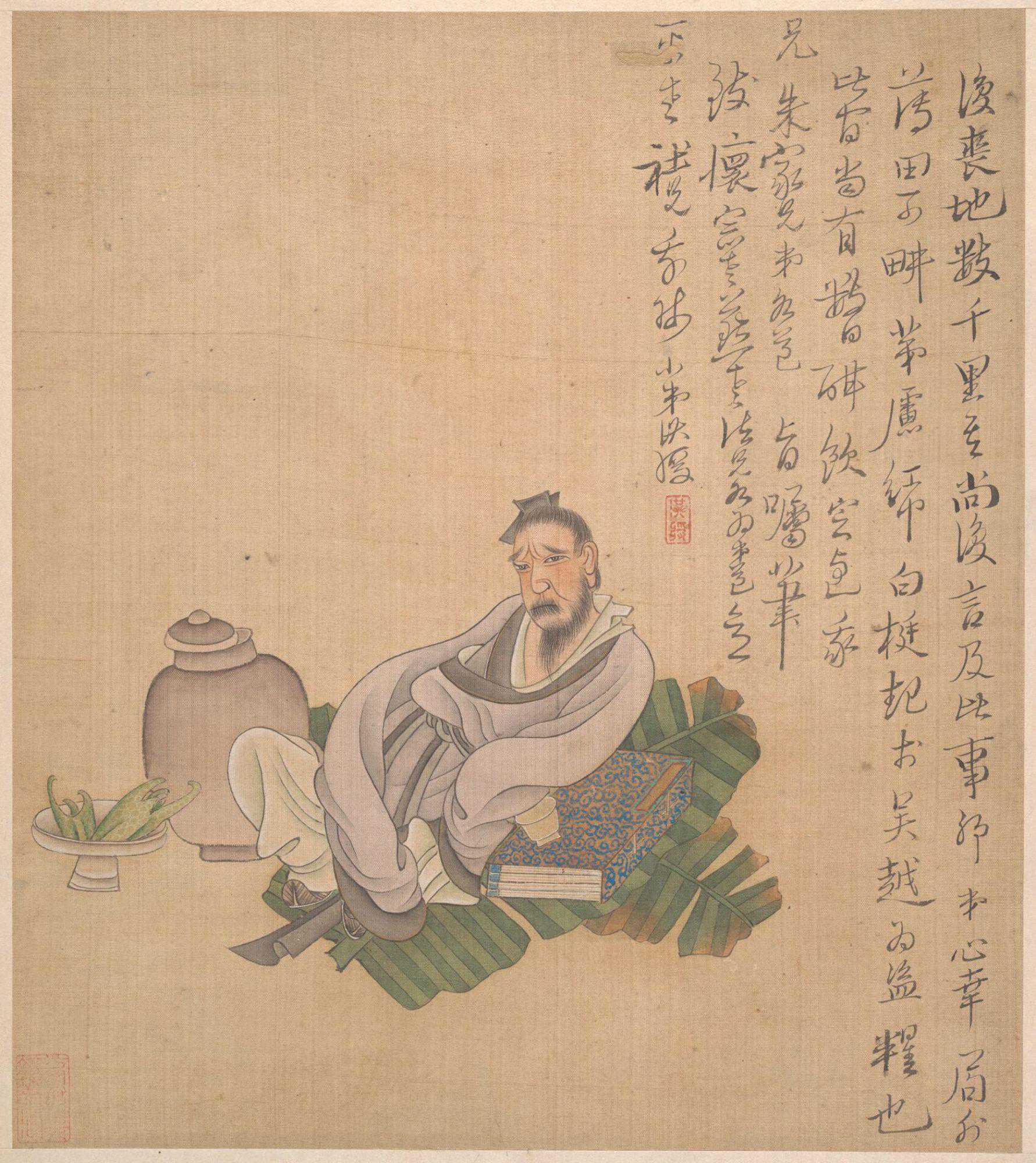 陈洪绶在年幼时就曾由蓝瑛指点过其作画,得到了董其昌好友陈继儒的赏识,后结识了理学家刘宗周、著名文人张岱、大书画家祁止祥等人。良好的家庭环境为陈洪绶的艺术才能发展打下来了文化基础。