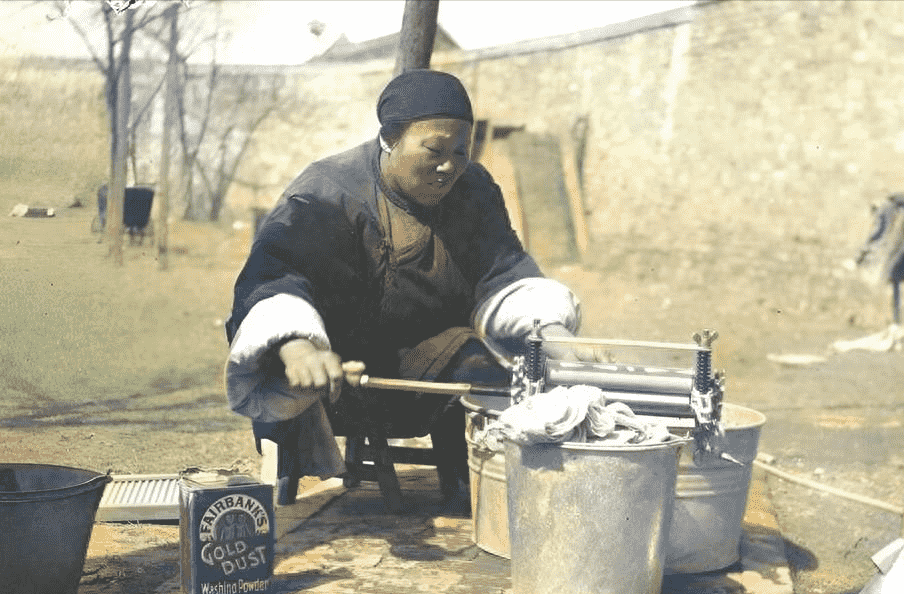 晚清时期的一位洗衣服的妇女,这个女人是富裕人家的佣人