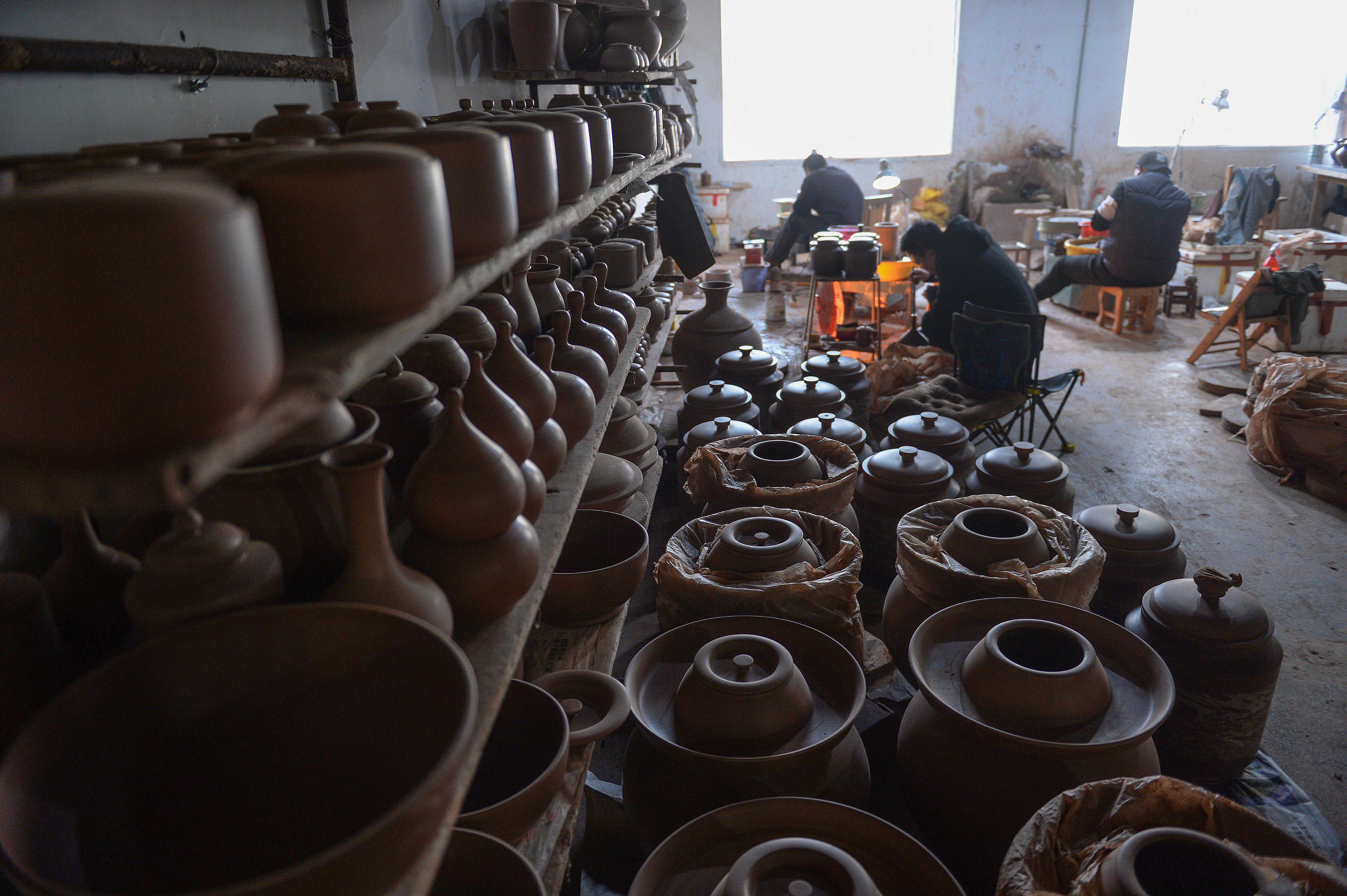 安富街道荣昌陶大师园的工作室,工人们正在制作陶器,屋内放满了等待烧制的陶器半成品。记者郑宇摄(资料图片)