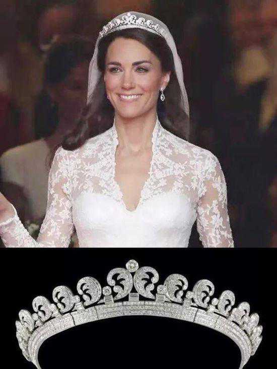 还有一款是国王乔治六世送给妻子伊丽莎白王后的礼物,之后成为了英国女王伊丽莎白二世的18岁生日礼物。又由女王传给了儿媳妇,2011年凯特王妃的婚礼上戴上的新月形卷轴冠冕,就是由卡地亚打造的。