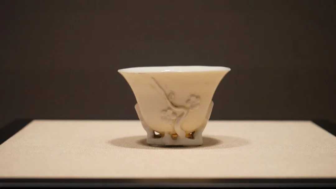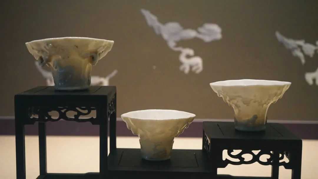 展览中很多这种树头杯,其实就是仿犀角杯的造型。